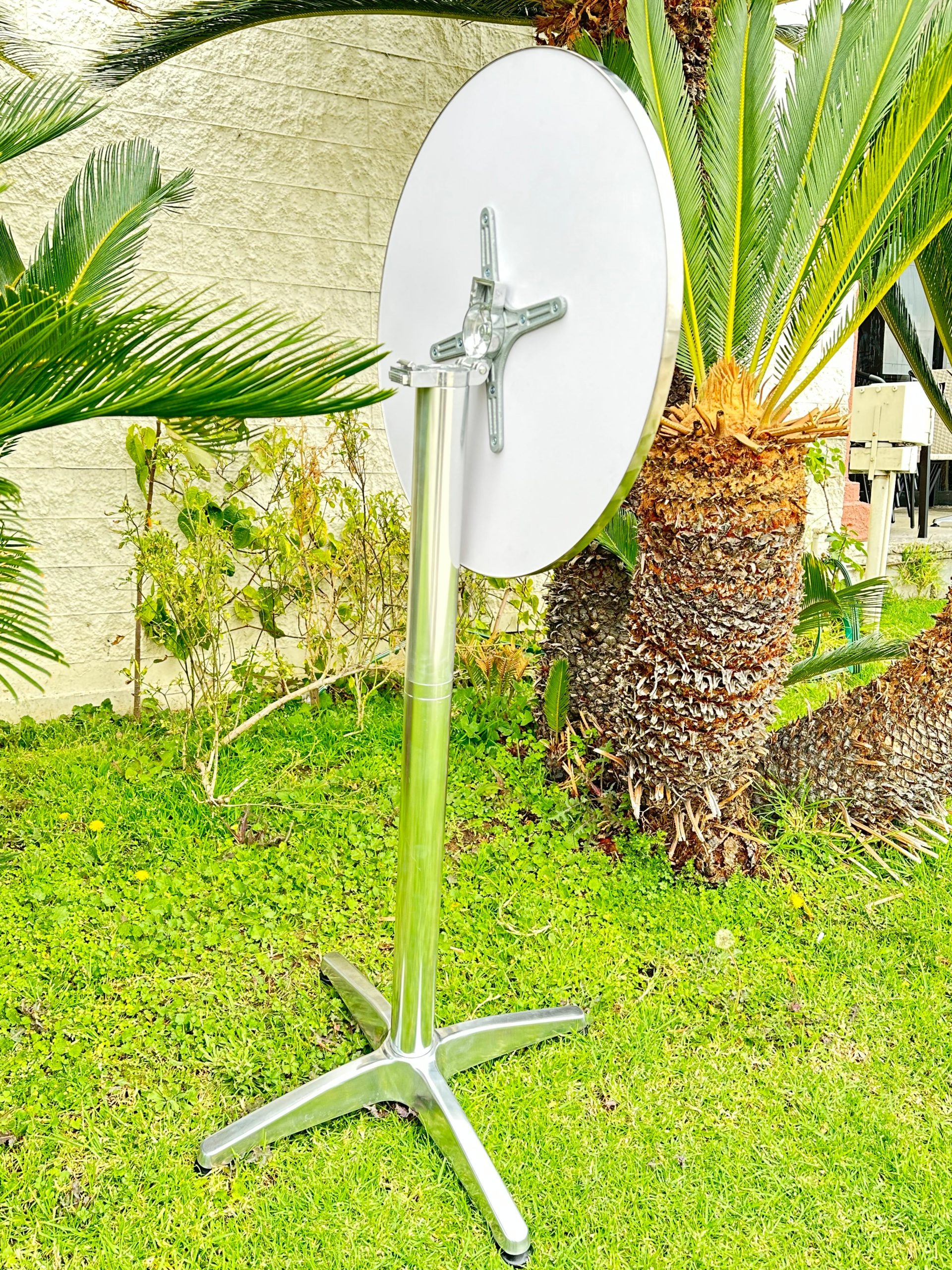 | Frame/Base Material | Slender, cylindrical metal columns (likely stainless steel or aluminum) with a polished, chrome – like finish, star – shaped (pentagonal) metal base |