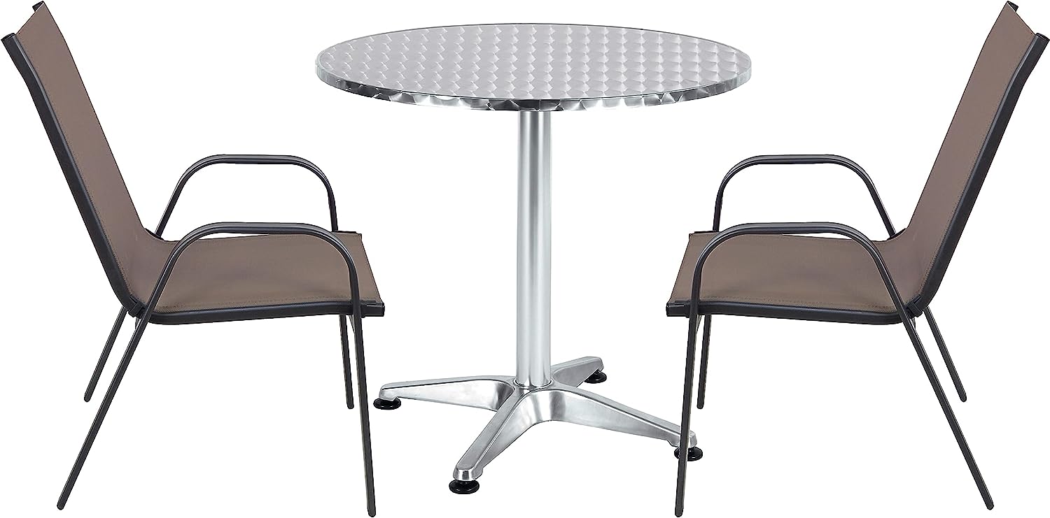 This set includes a small round bistro table and stackable outdoor chairs. The table and chairs are made of high – quality materials, designed to withstand outdoor conditions. They offer a modern and functional aesthetic for your outdoor spaces.