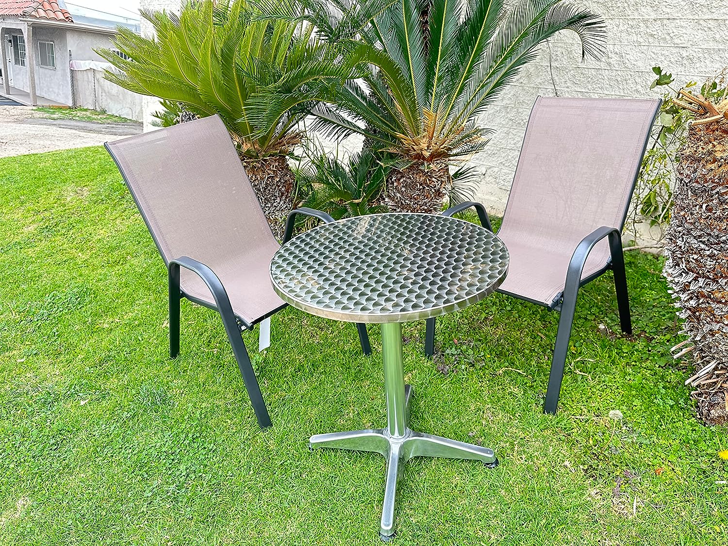 Product Type Outdoor furniture (round metal side table and stackable outdoor chairs)