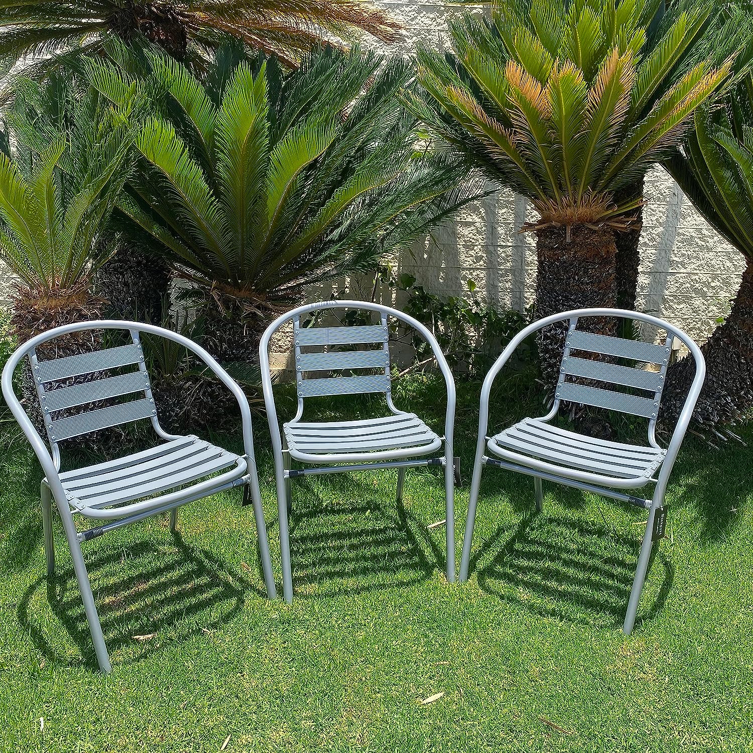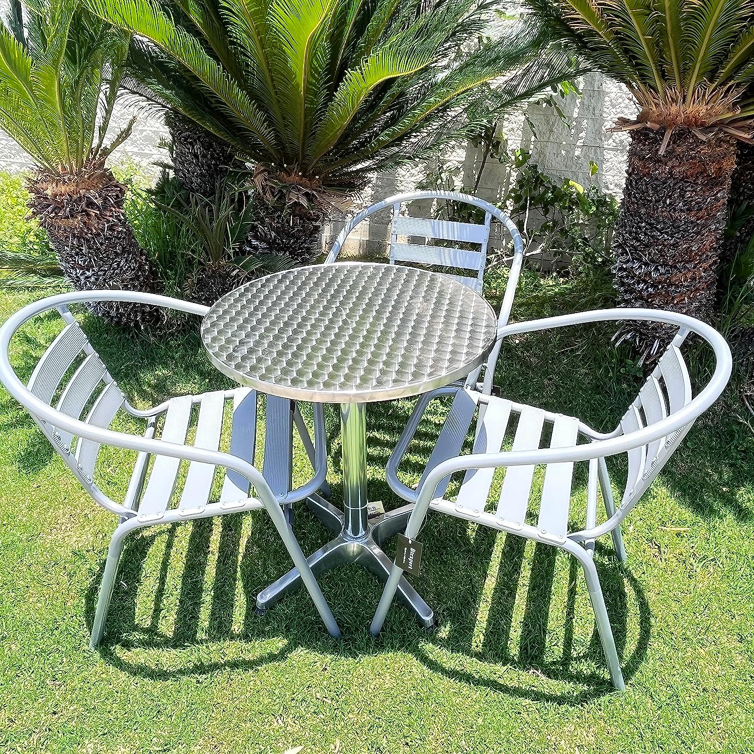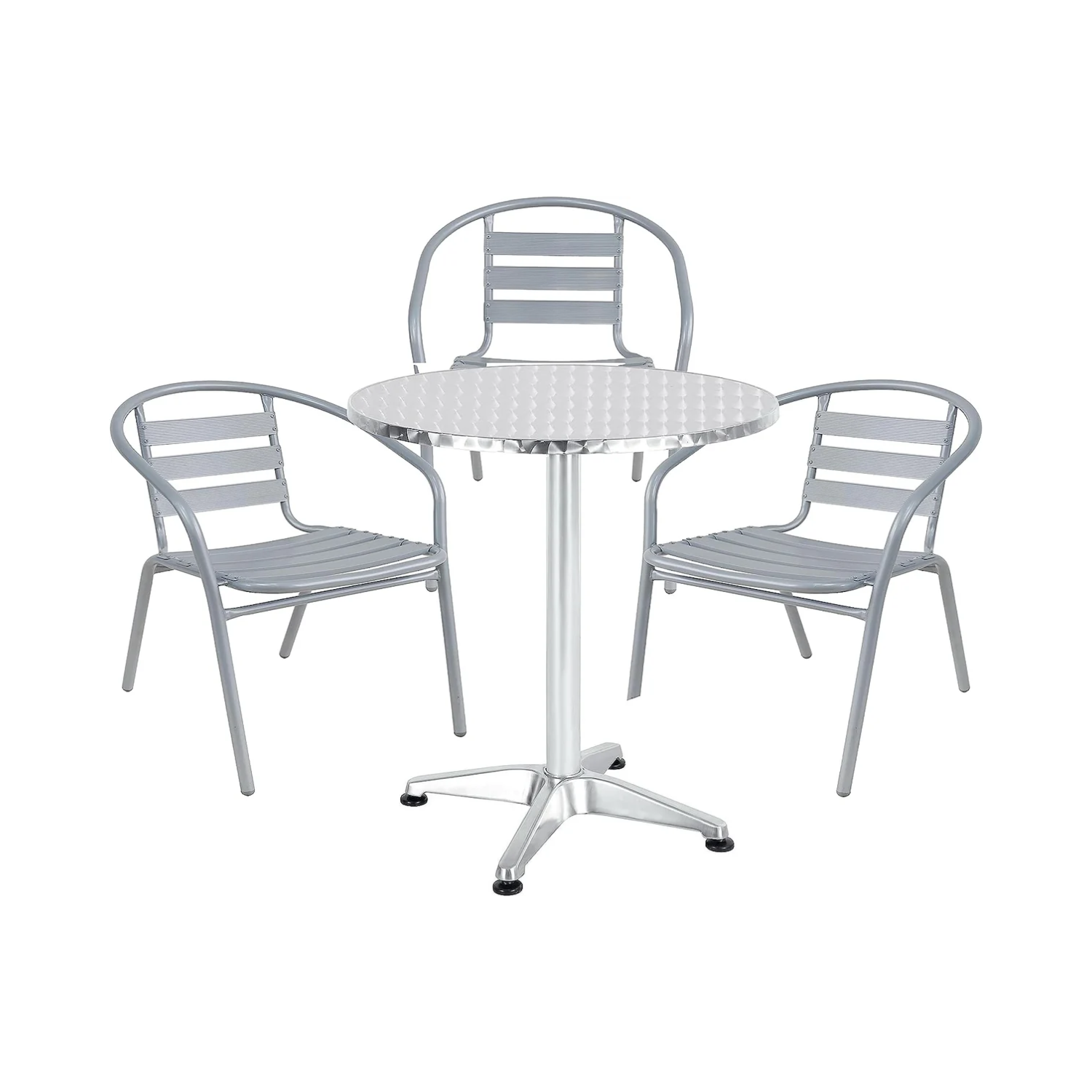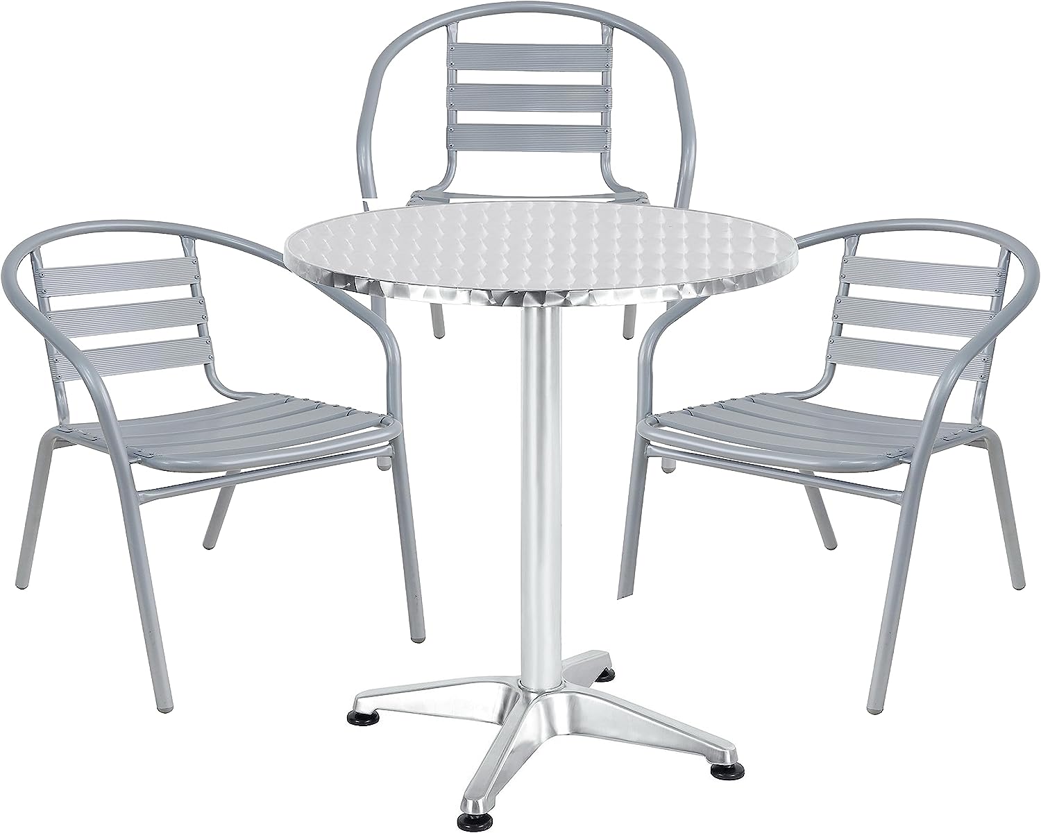 | Material | Metallic alloy (likely aluminum) for frames, tables, and bases; tabletop with textured surface; chairs with smooth, powder – coated or painted metal frames |
