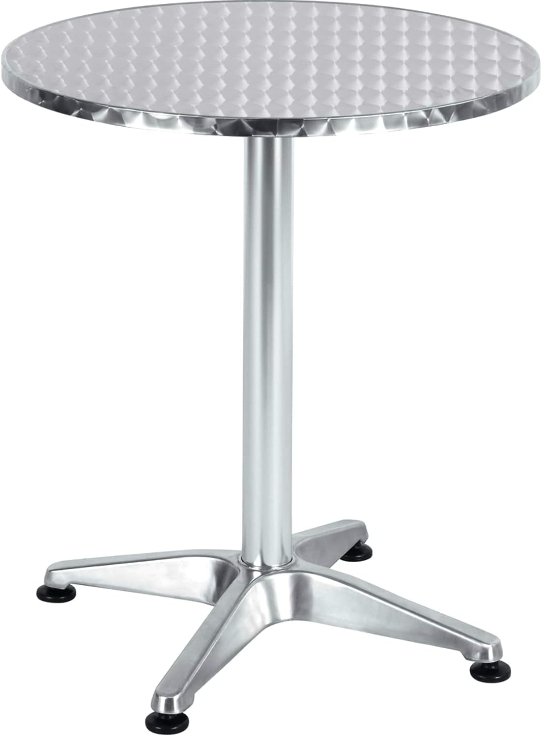 Table Material – Tabletop Reflective, textured (hammered/dimpled) silver metal (likely aluminum)