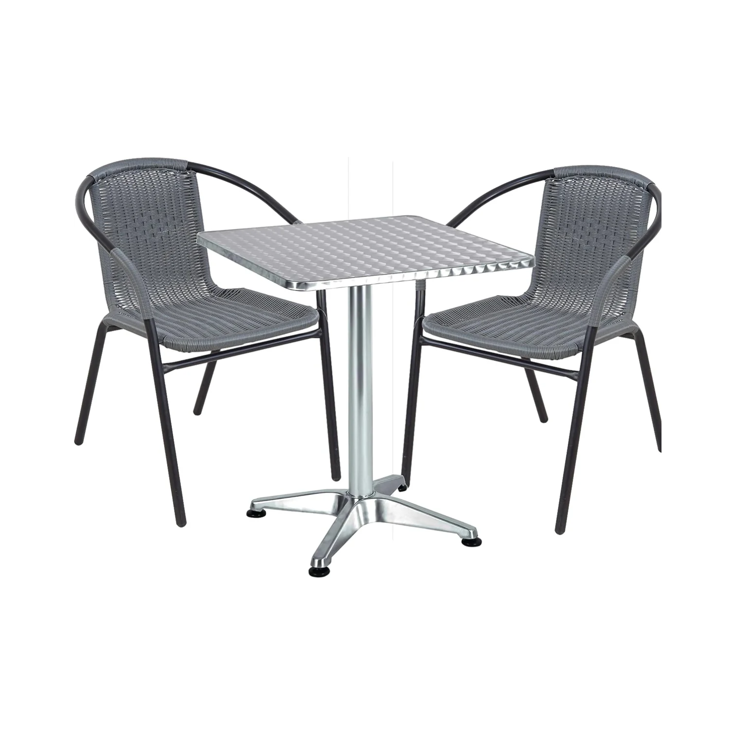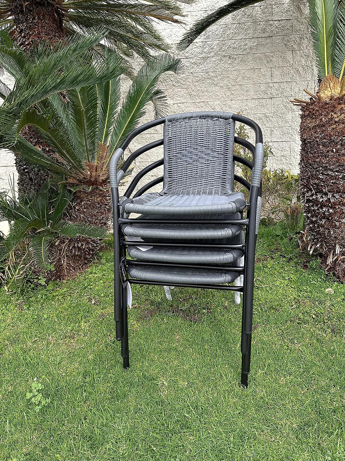 | Chair Material (Seat and Backrest) | Woven, synthetic rope – like material (likely resin rattan or synthetic wicker, gray) |