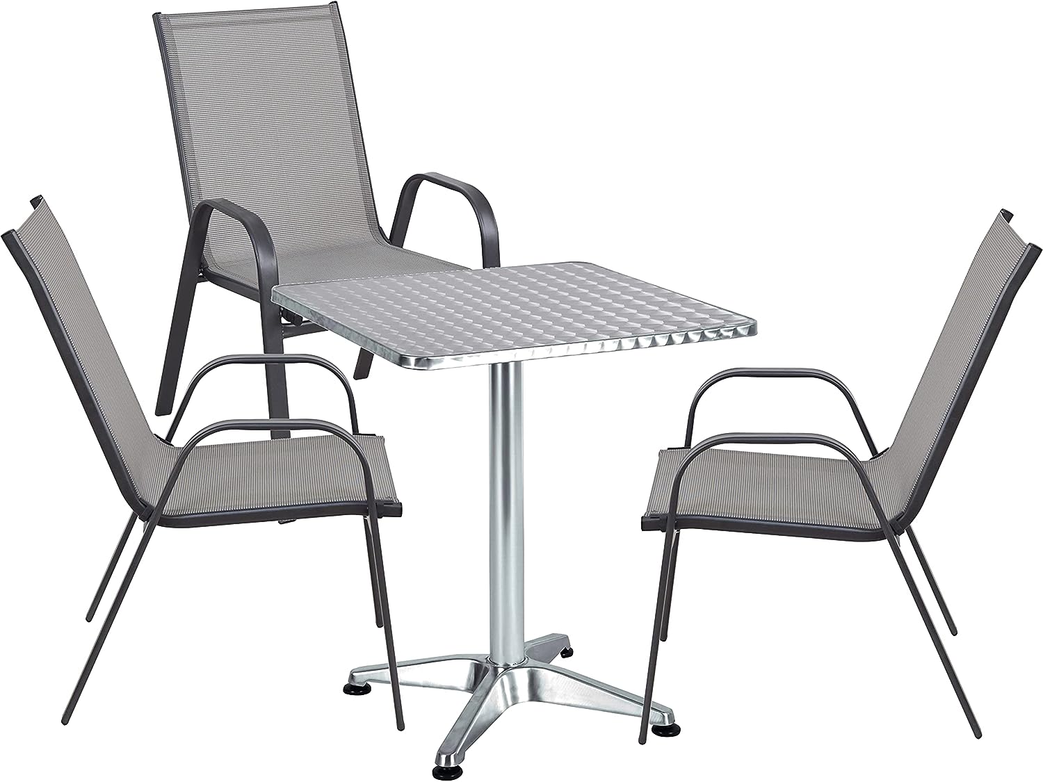 This outdoor patio furniture set is a great addition for small outdoor areas. It includes a square table and matching chairs, perfect for casual outdoor activities like dining or having a coffee break.