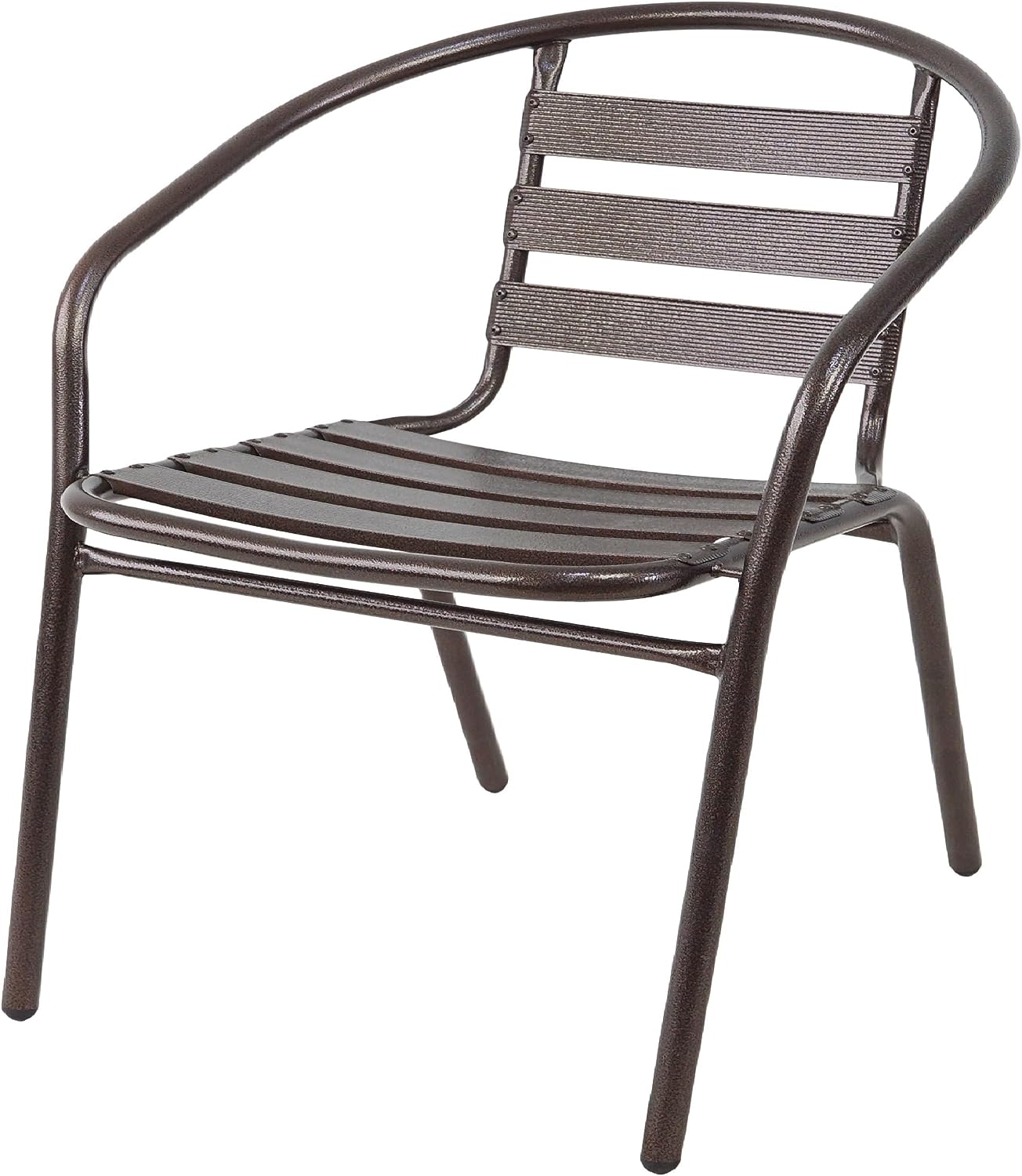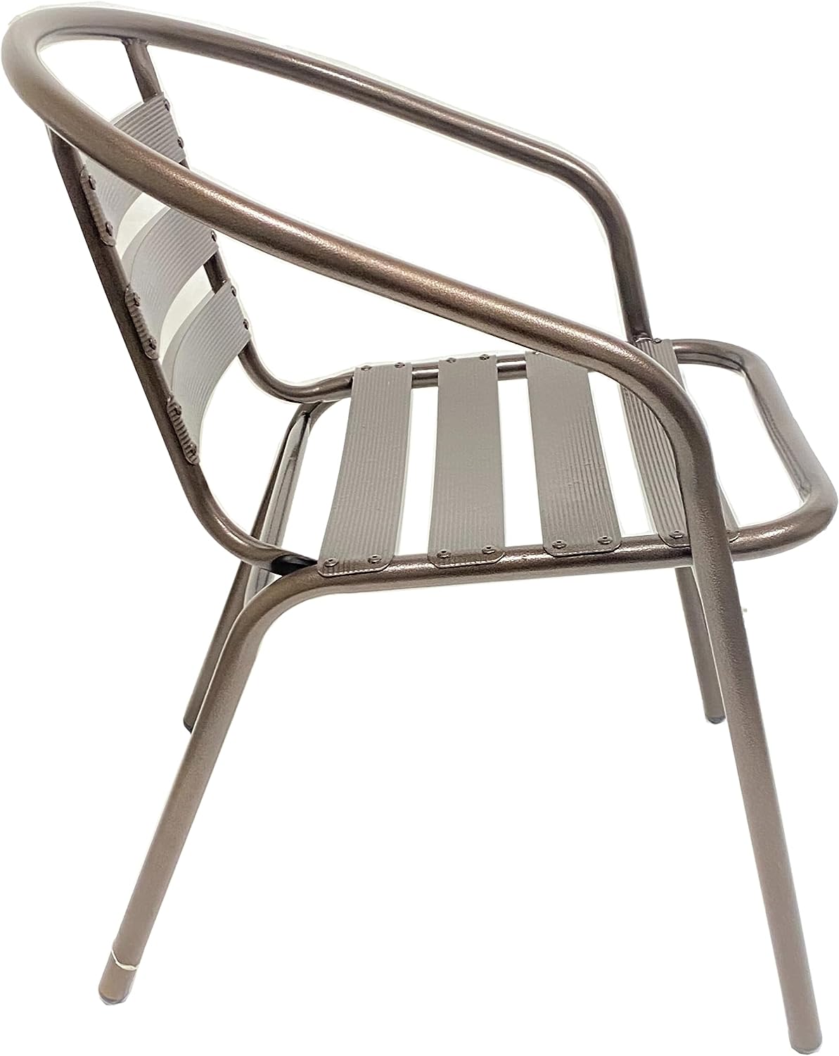 | Chair Color | Dark brown/bronze metal frames, slatted seats and backrests |