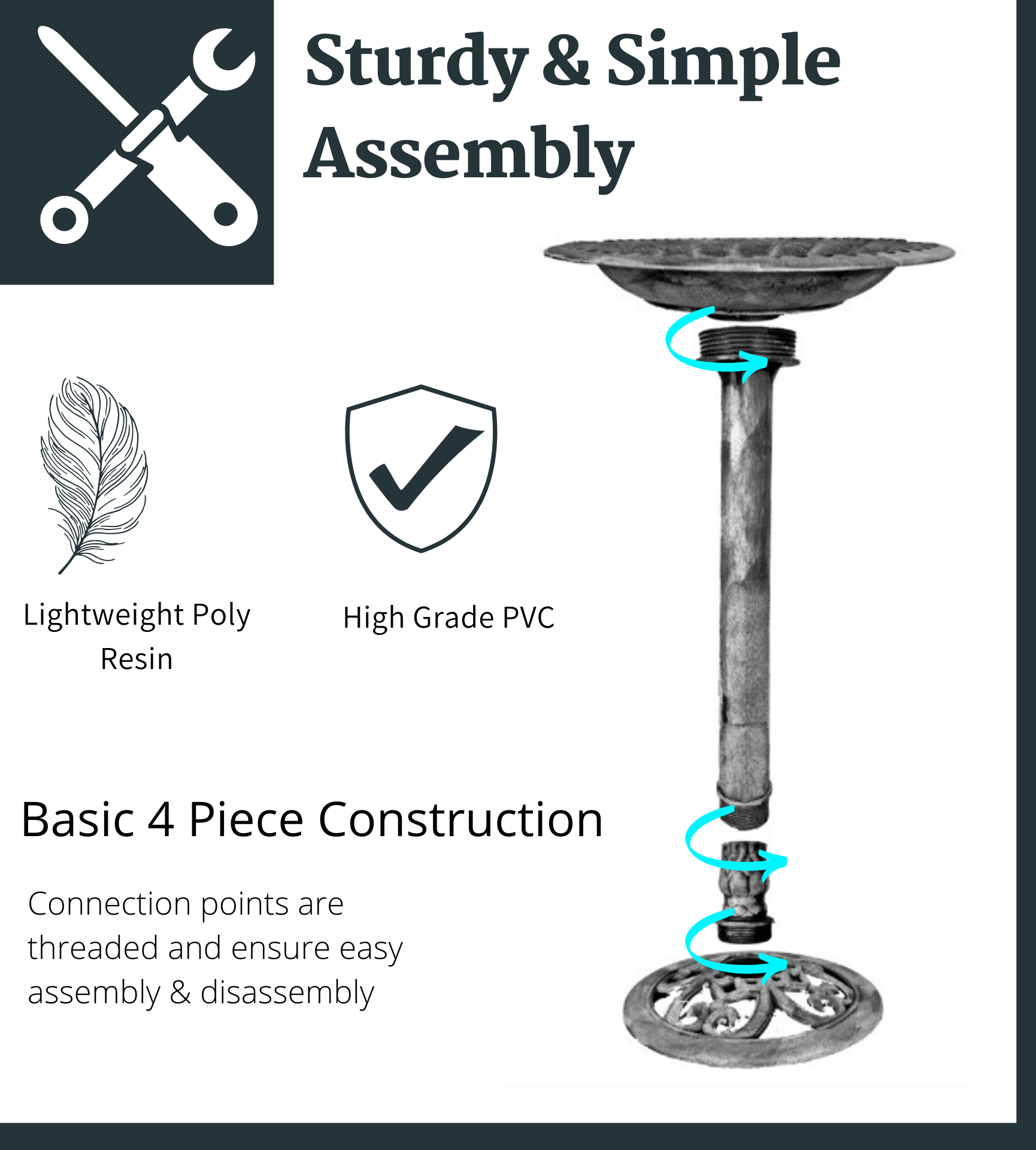 - A CHARISMATIC AND ROYAL THEMED GARDENPEICE: Constructed in an exquisite imperial classic style with a turquoise stained statuesque patina and a simple base, it’s lightweight and easy to transport. The stylish components have a vintage verdigris appearance.