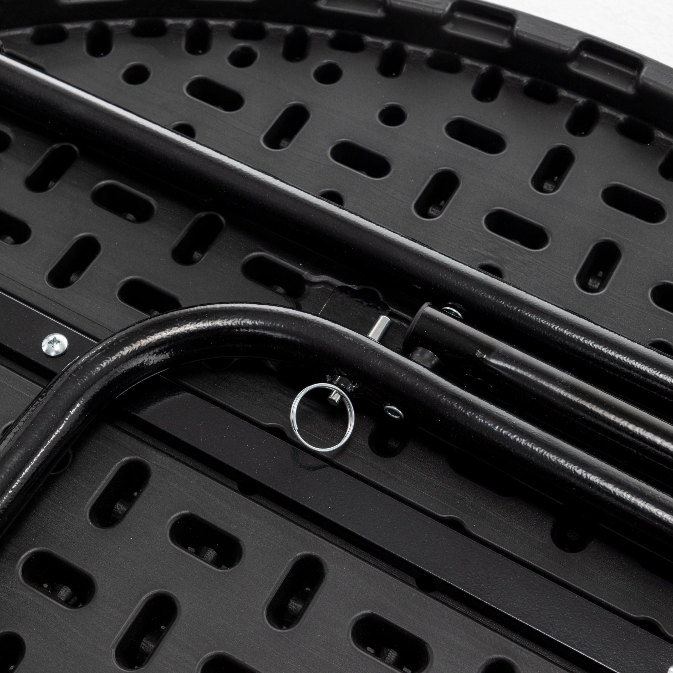 - Reinforced metal frame with a crossbar for enhanced stability