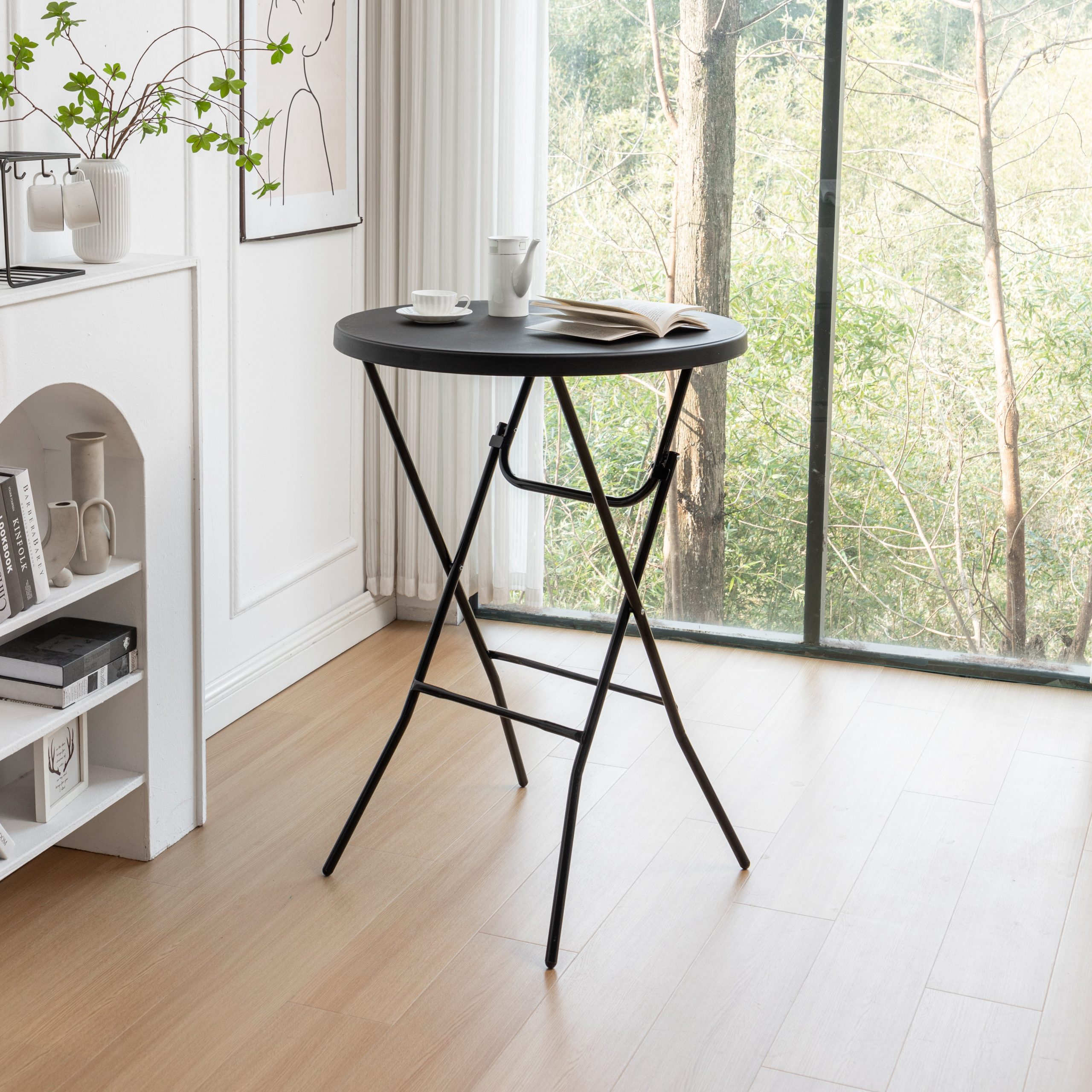 Small apartments, offices, guest rooms, balconies. Can be used as a bar table for drinks and snacks, a side table next to chairs/sofas, or a temporary workspace.