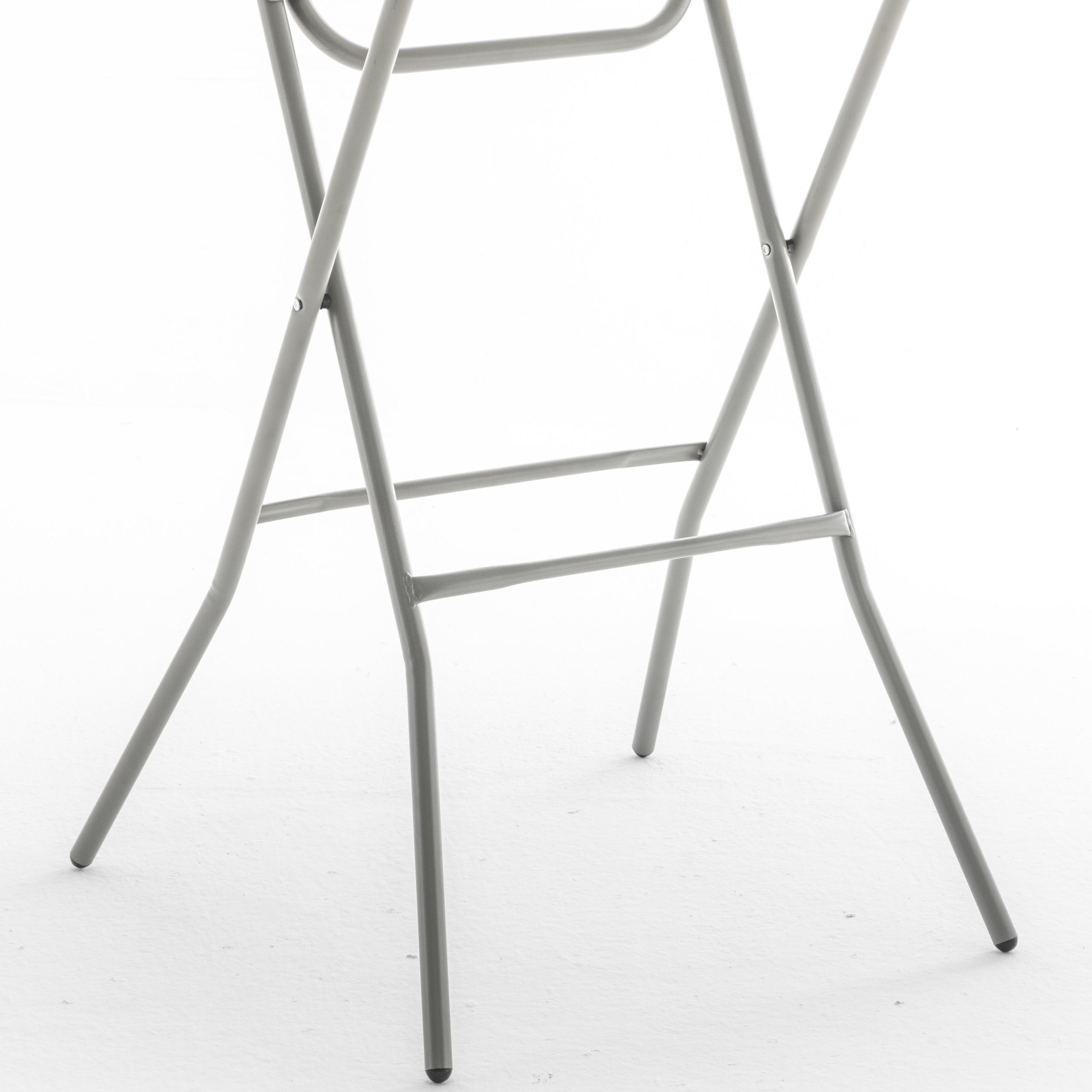 This folding round table is a practical and versatile piece. With a small size, it’s perfect for limited spaces. The combination of a white tabletop and a light gray/silver metal frame gives it a modern look.