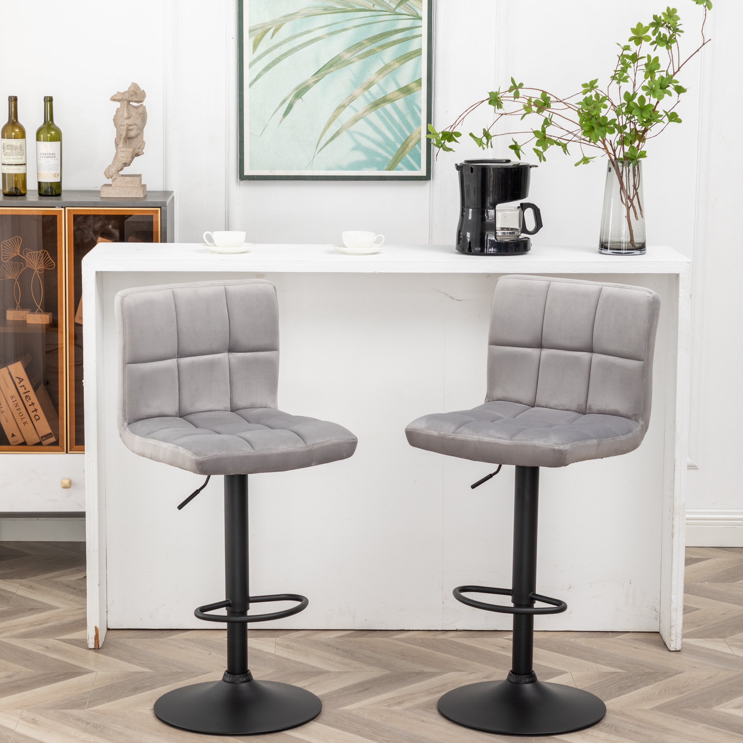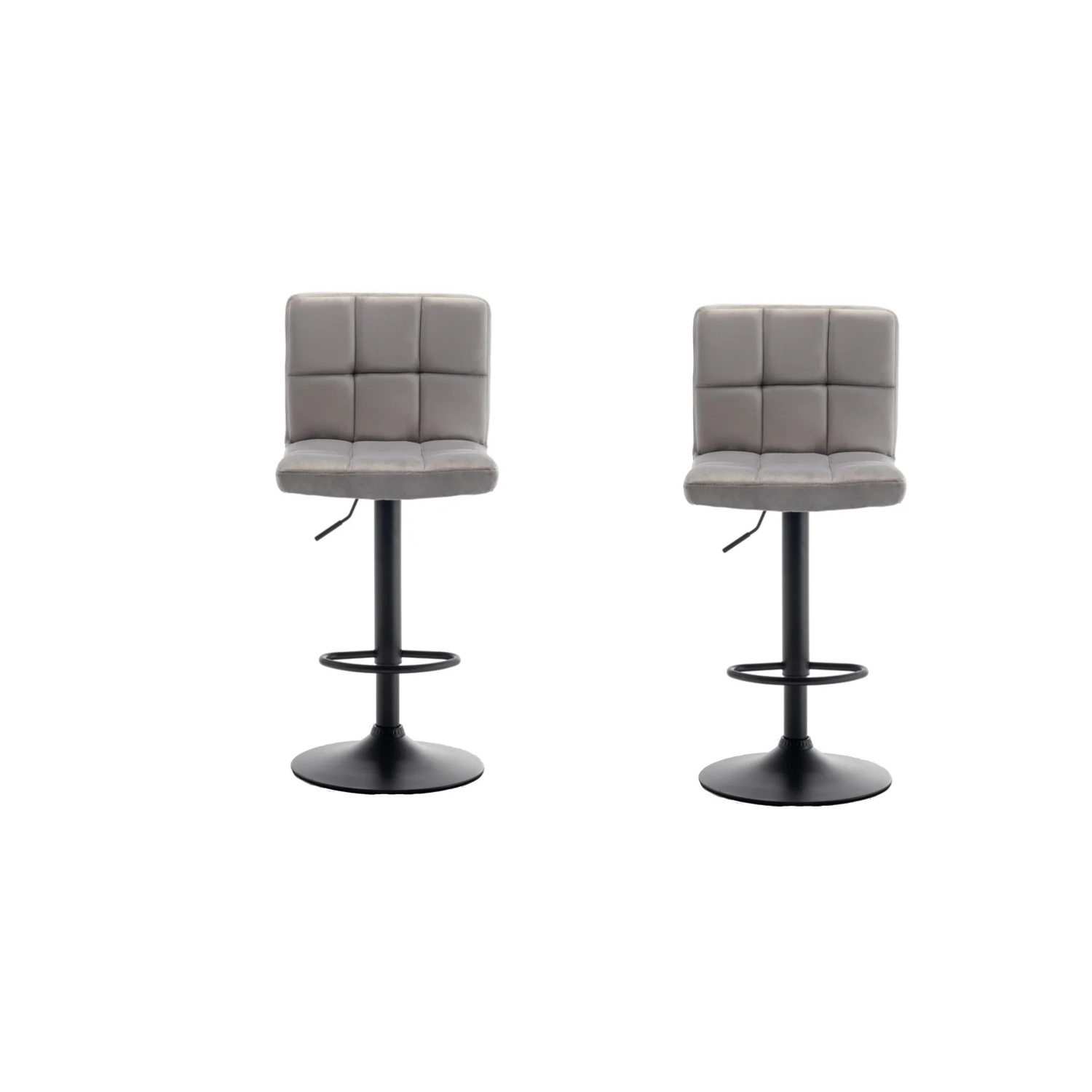 Enhance your high – table or counter areas with this set of two adjustable bar stools. They feature a modern design with a combination of light gray upholstery and matte black metal components, offering both style and functionality.