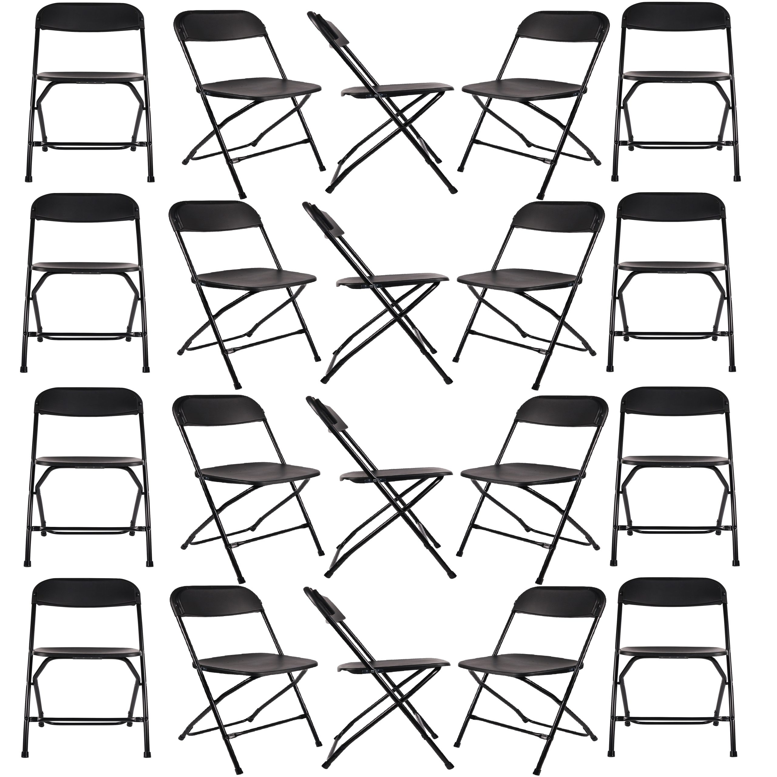 - Durable plastic seat and backrest with a metal frame