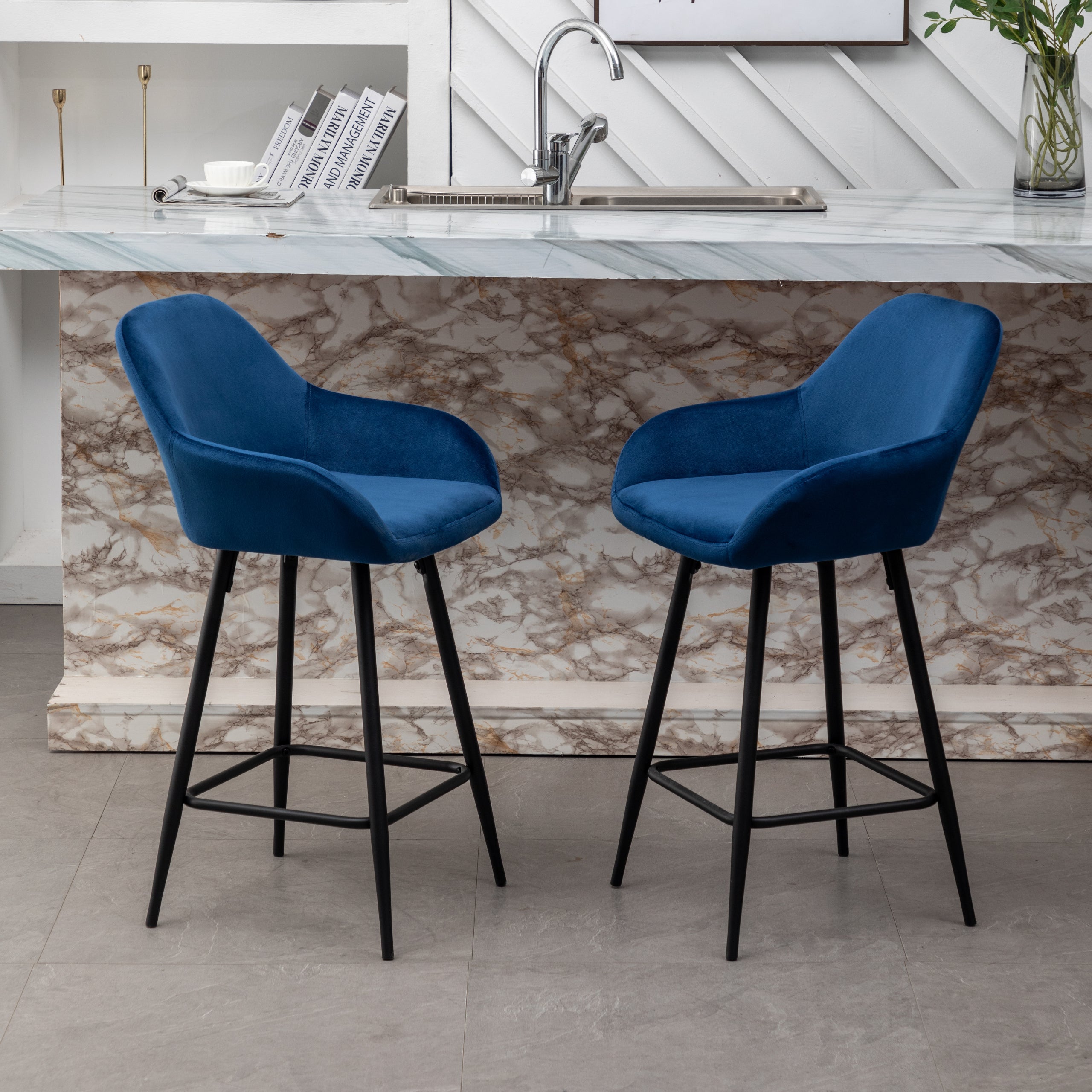 This set of bar stools is perfect for high tables, kitchen islands, or bar counters. With a soft blue upholstery and a sleek black metal frame, they offer both comfort and style. The ergonomic design makes them suitable for long – term use.