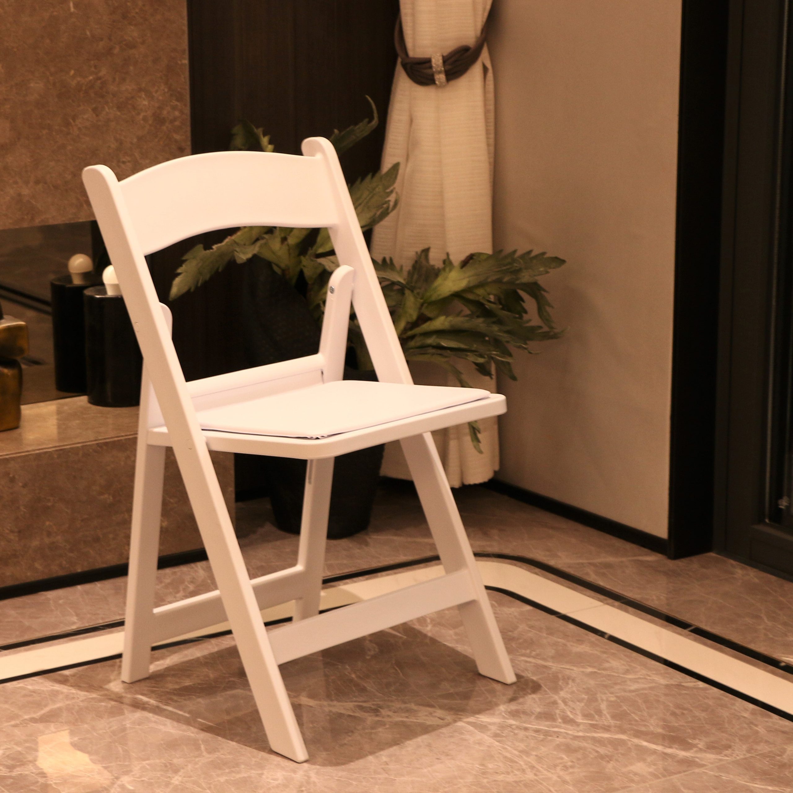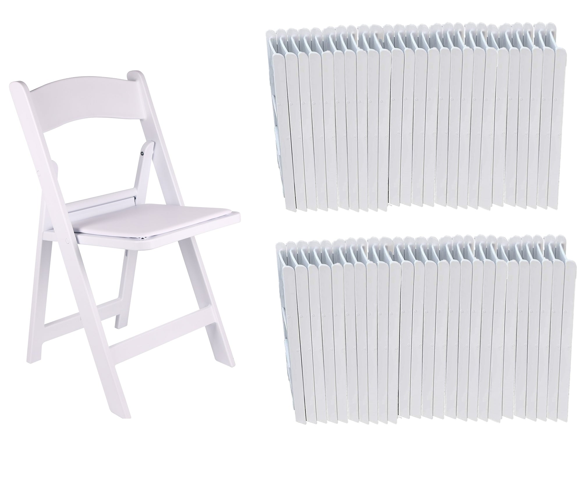 This set of folding chairs offers a practical seating solution for various occasions. With a clean white aesthetic and a classic design, they are both functional and visually appealing. The chairs are easy to fold and stack, making storage and transport a breeze.