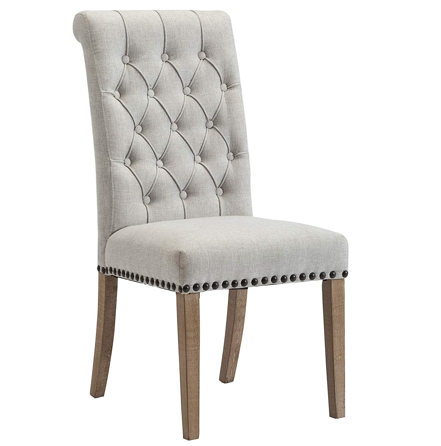 - Design: High-back Parsons silhouette with tufted upholstery and bronze nailhead trim.