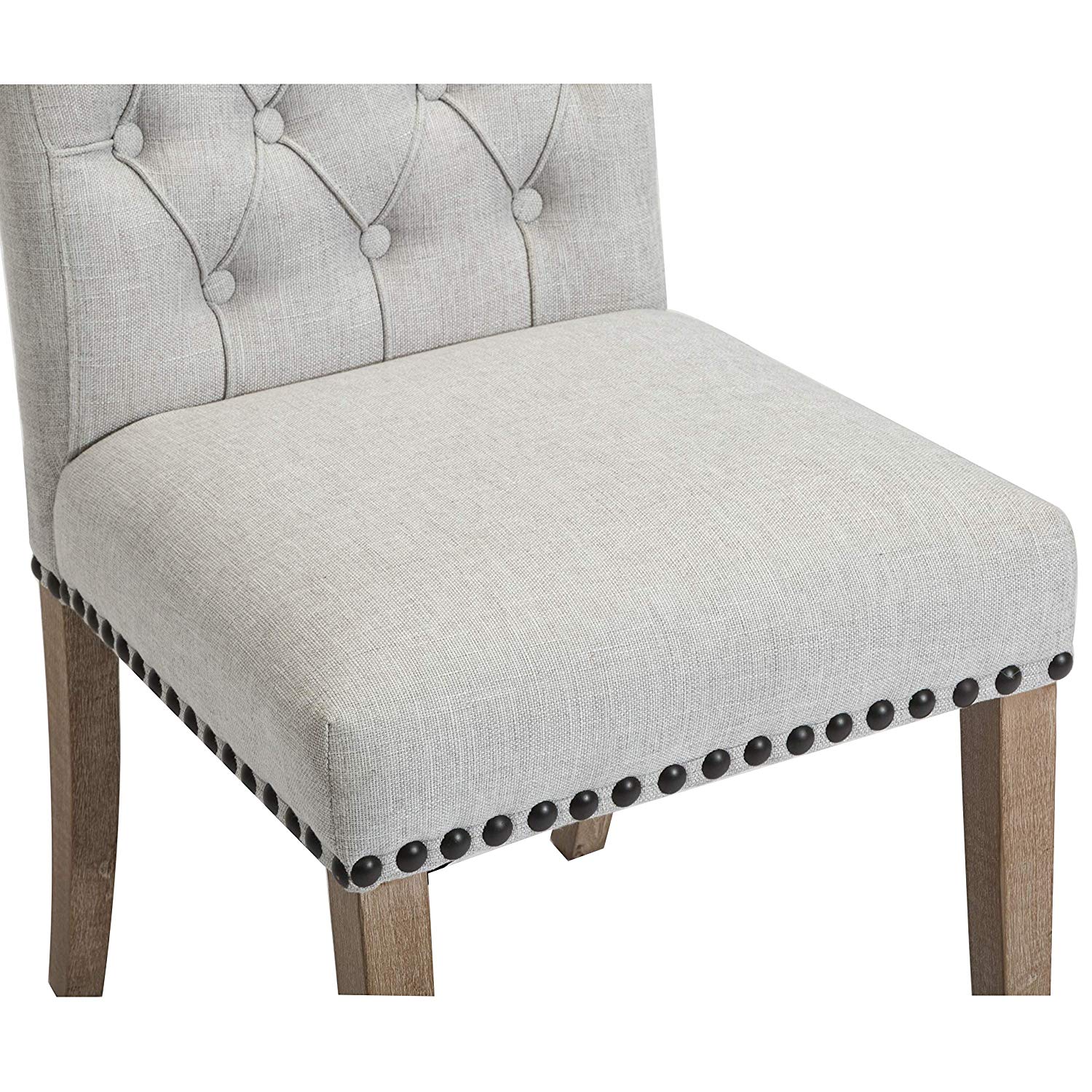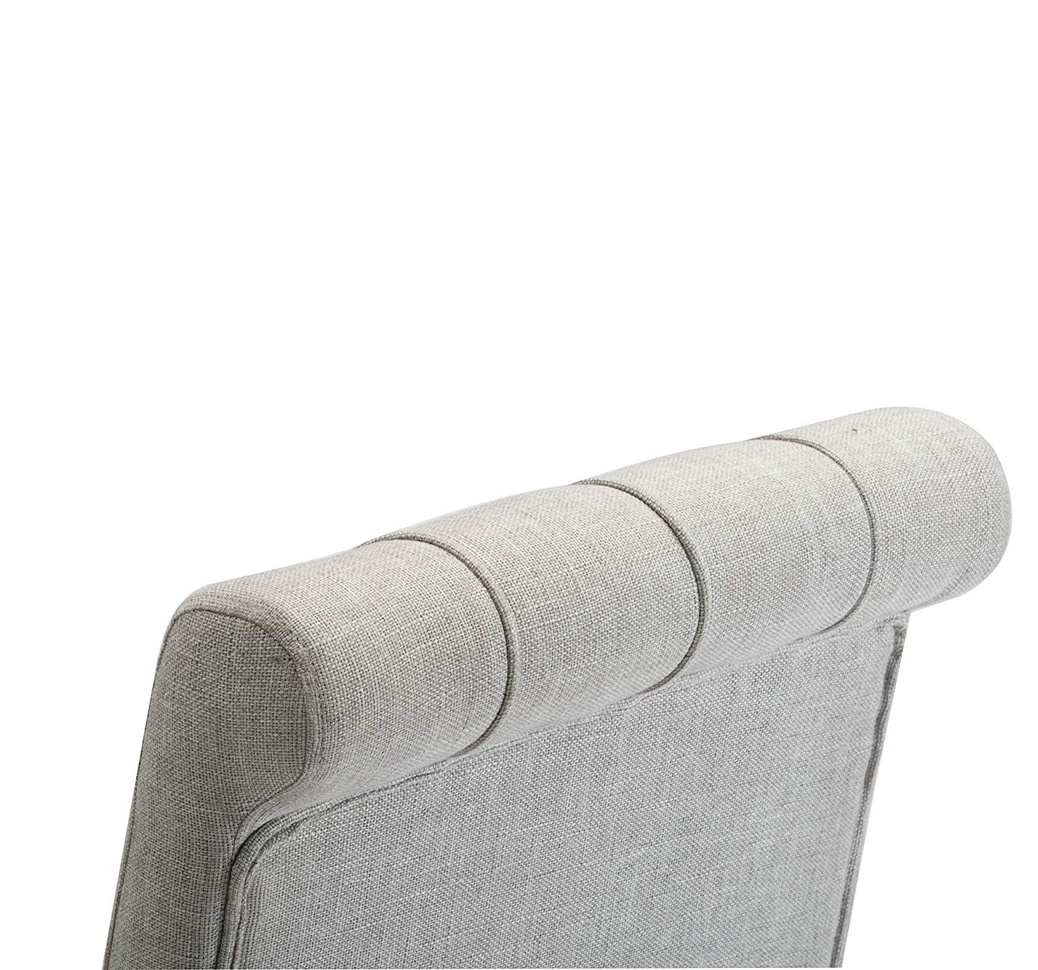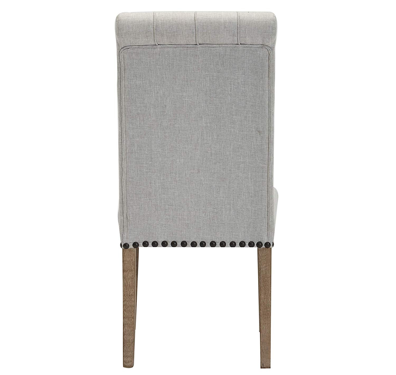 | Material | Gray Linen Upholstery + Distressed Washed Oak Wood Legs |