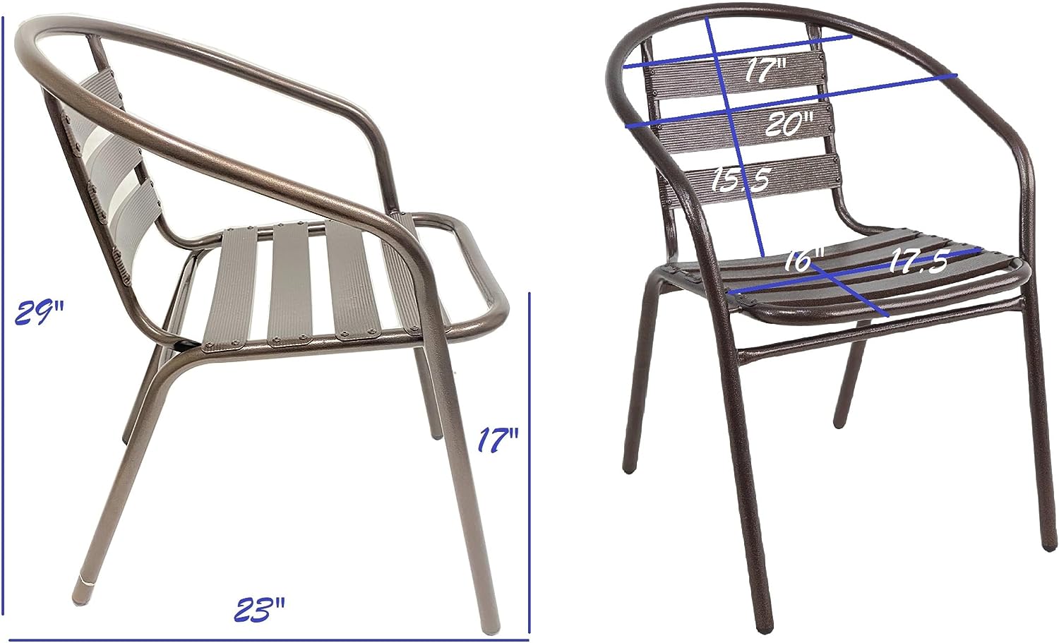 Chair Size Approximately 18–20 inches wide, 24–28 inches tall, and 16–18 inches deep, suitable for small outdoor spaces.