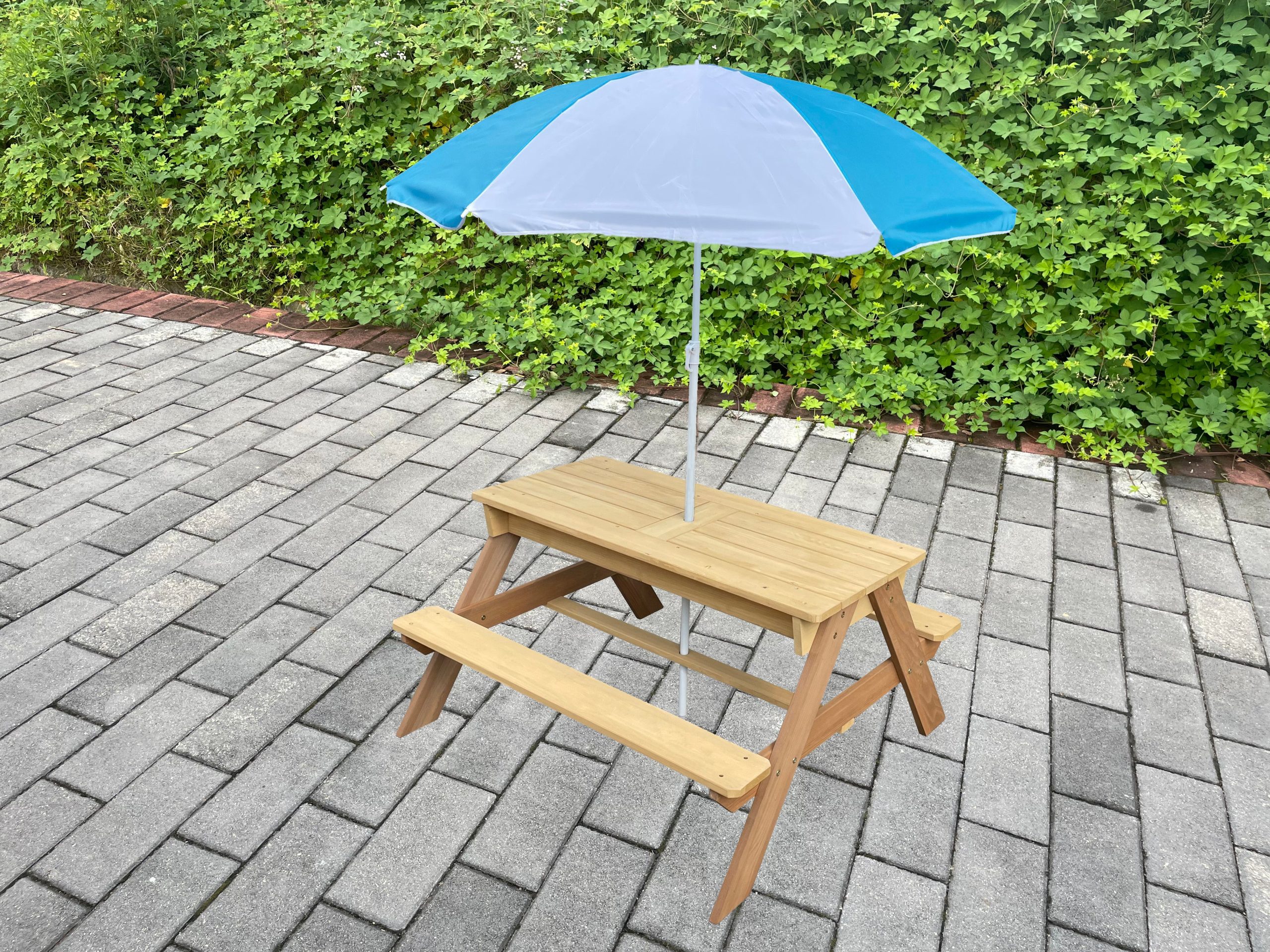 | Product Type | Children’s outdoor play/picnic table with an integrated sun umbrella |