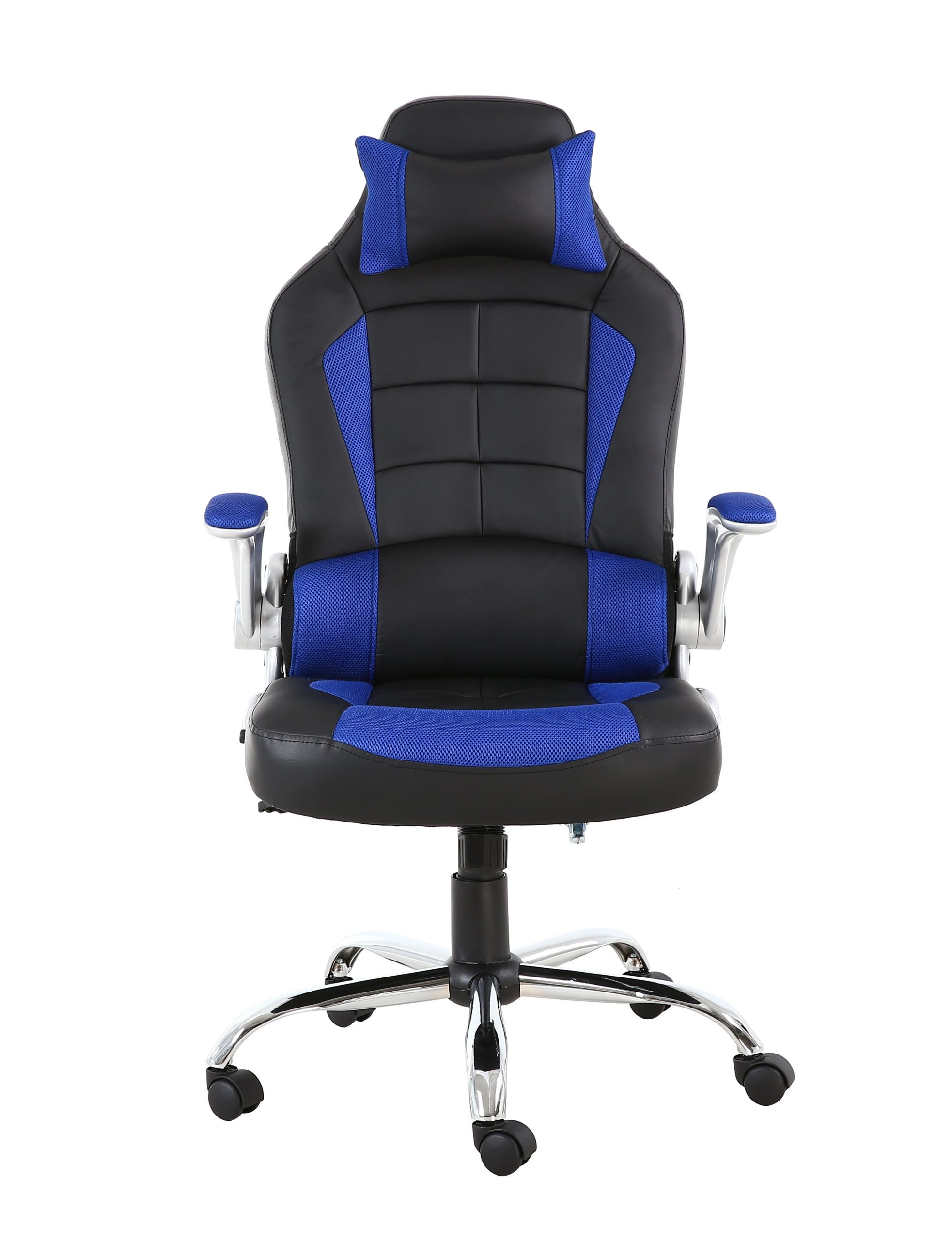 | Upholstery Material | Thick, durable black faux leather (PU leather) with blue mesh panels |
