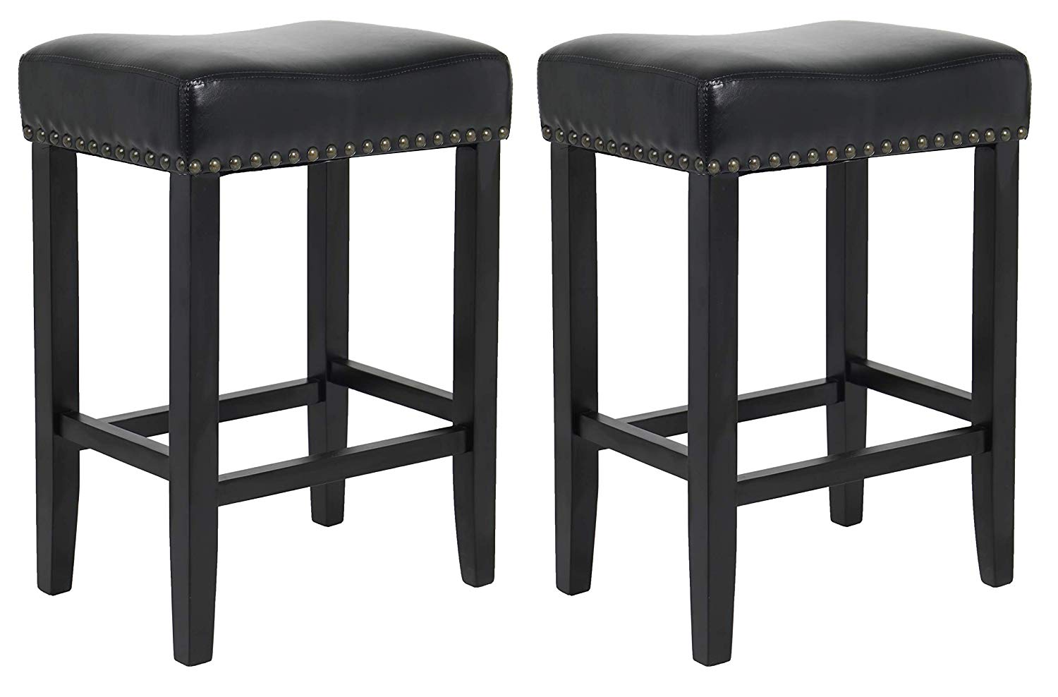- Clean the faux leather seat with a mild soap and water solution, and dry it with a soft cloth. Avoid using abrasive cleaners on the wooden frame and studs.