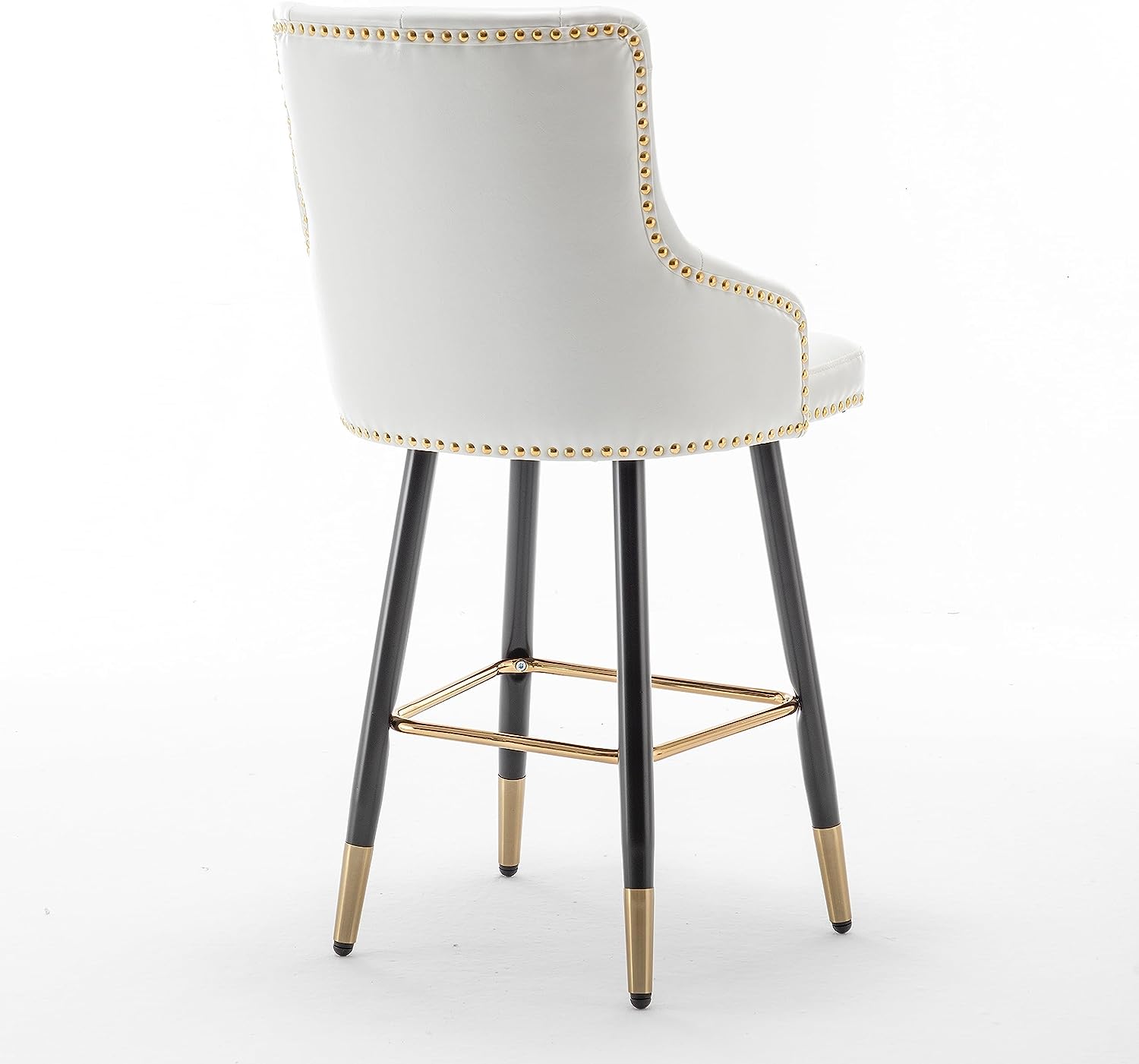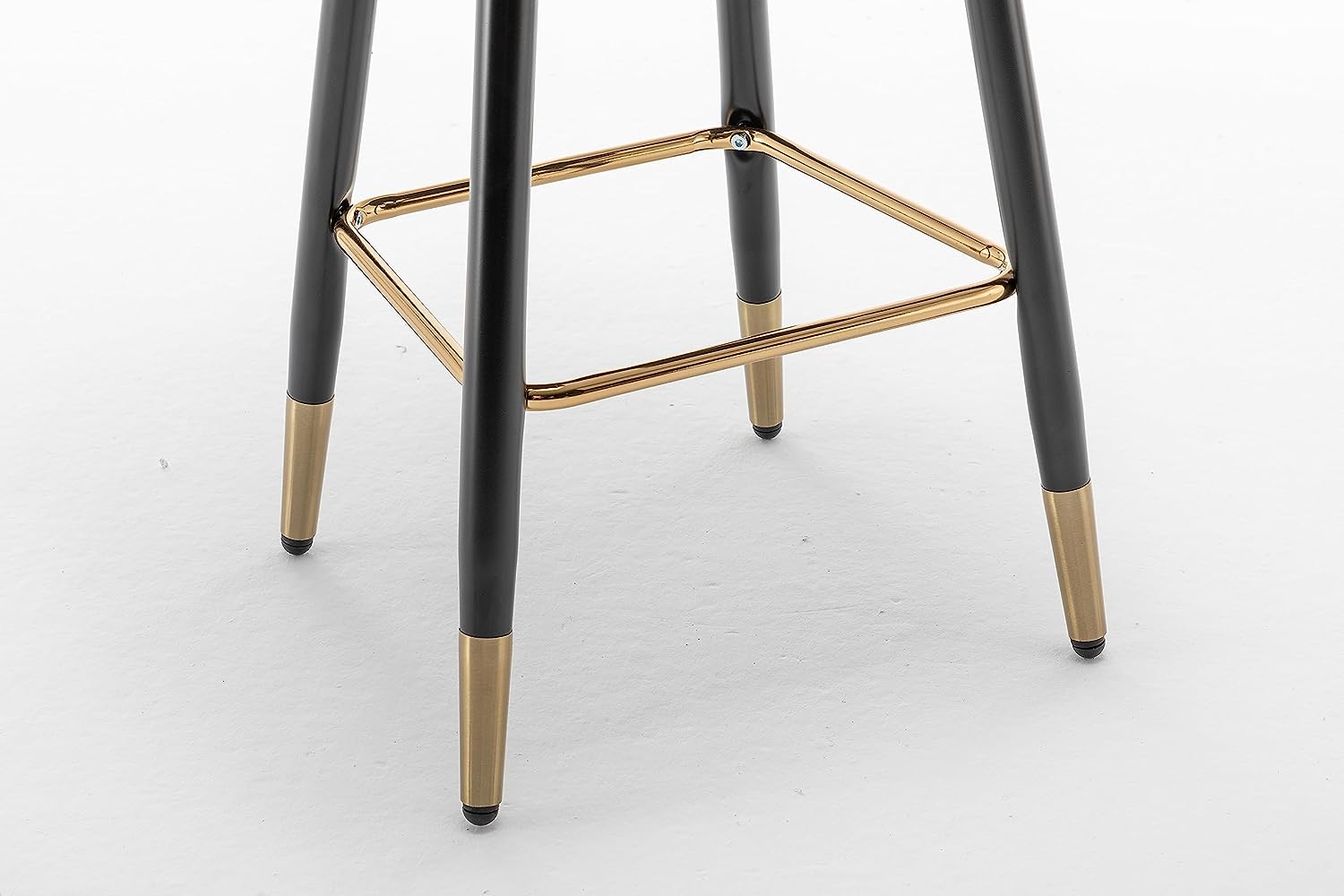 | Frame/Structural Material | Black metal (likely steel or aluminum) for legs, gold – toned metal (gold – plated or brass – like) for footrest, leg tips, and decorative nailhead trim |