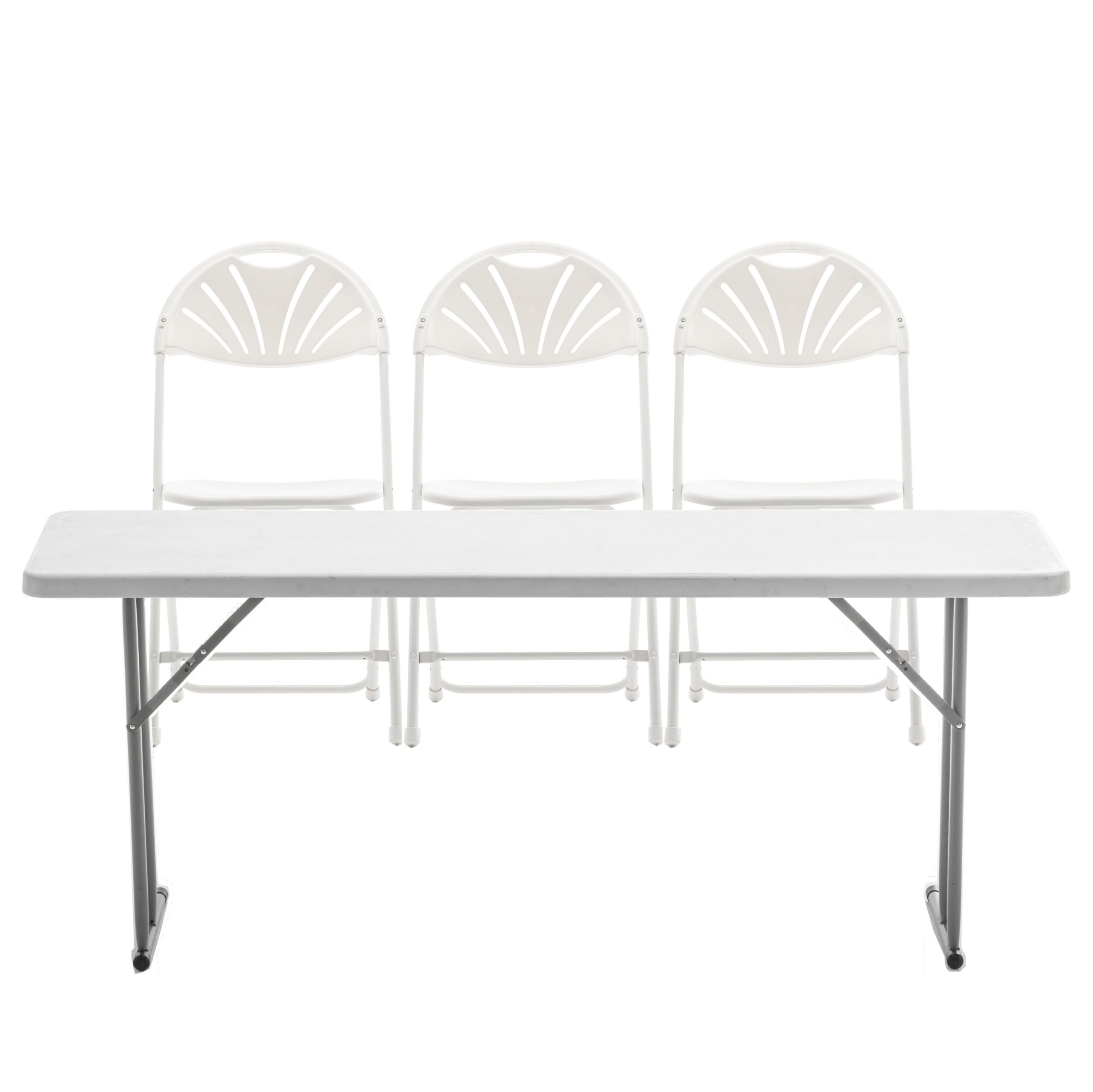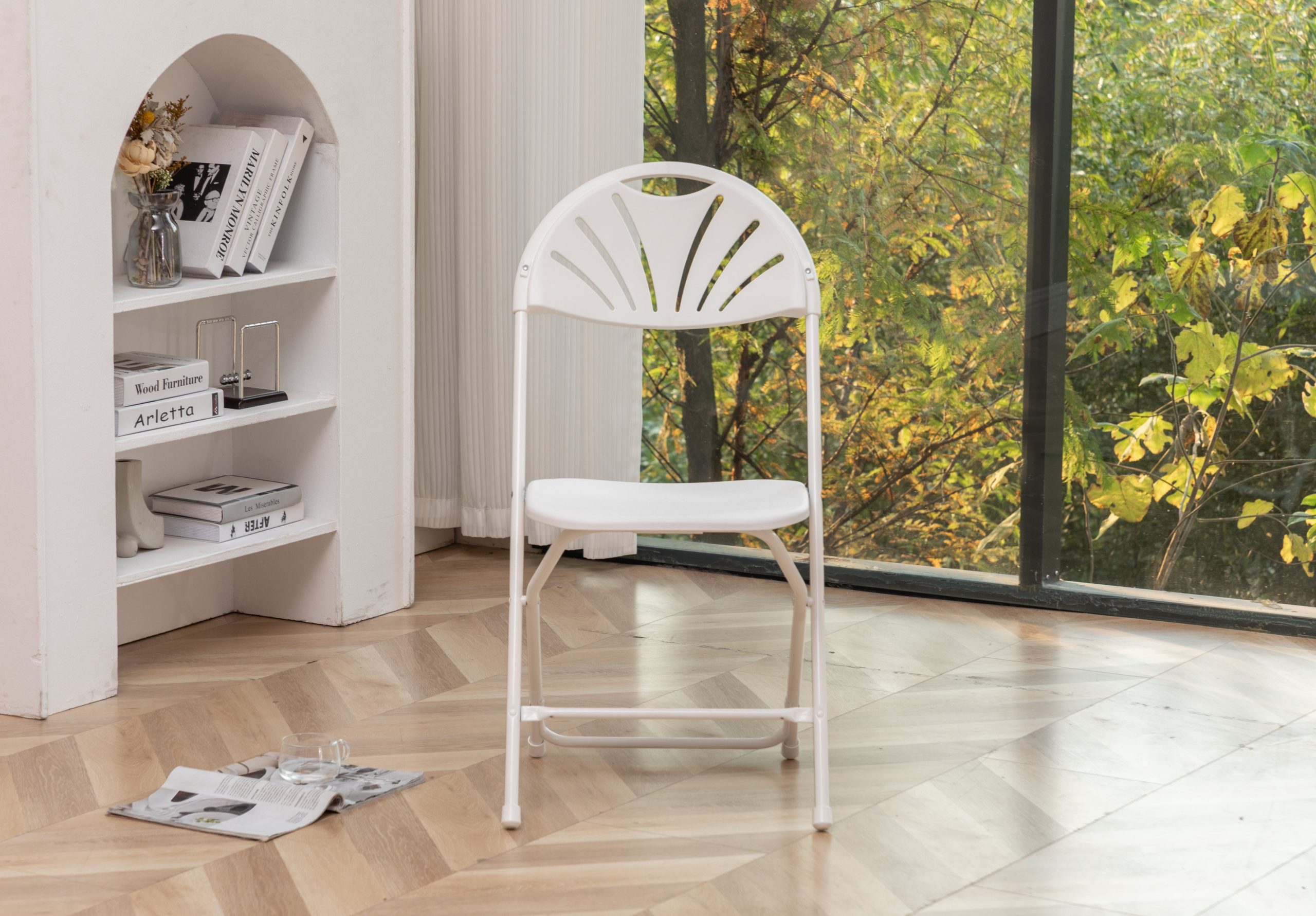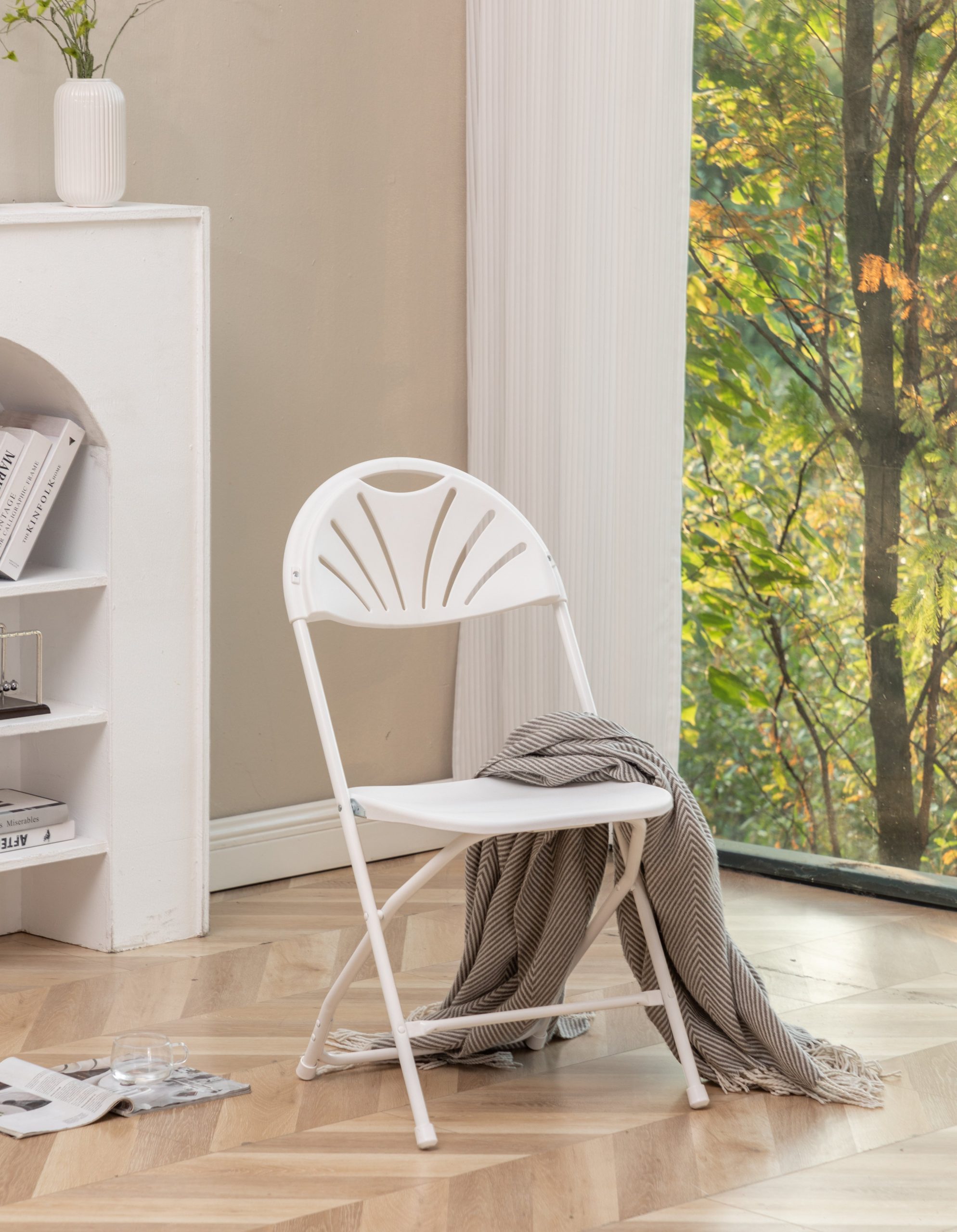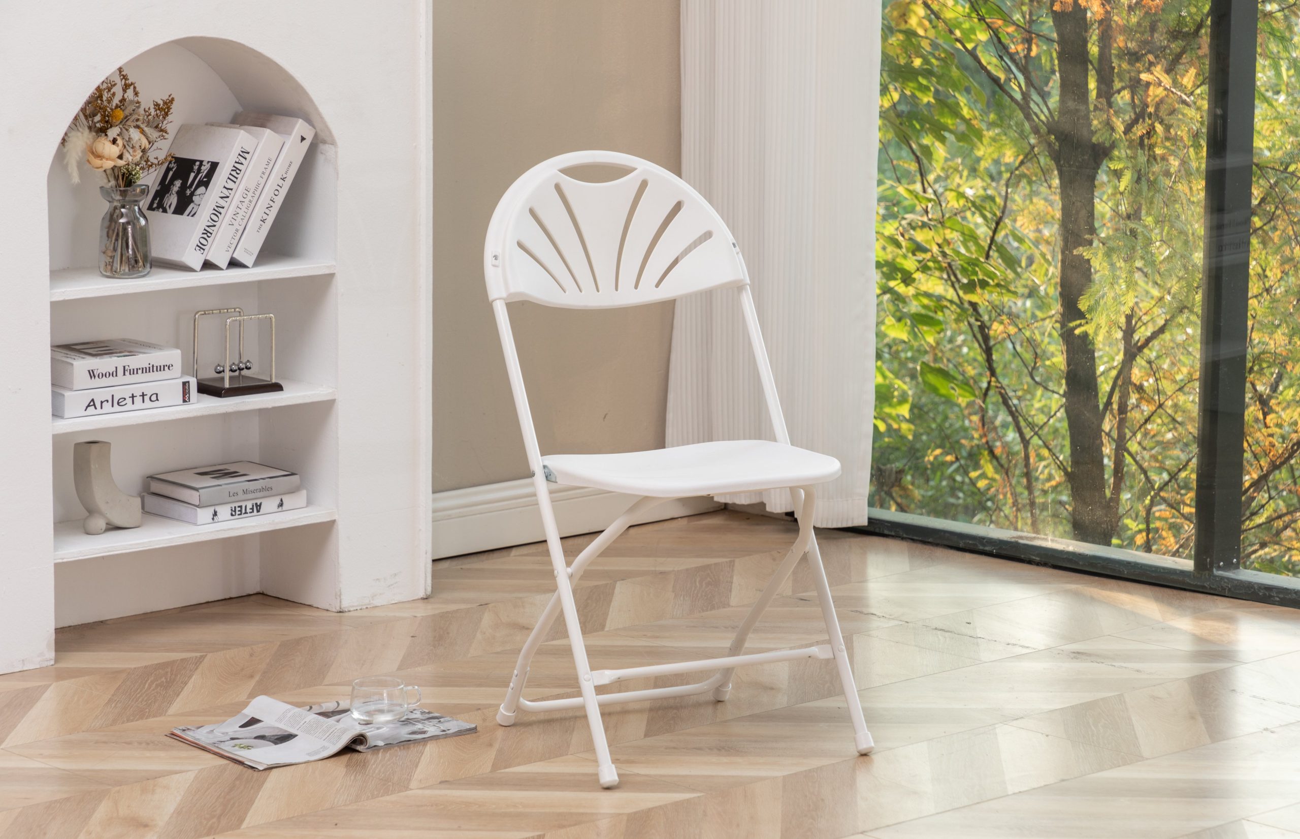 This folding chair set offers a practical seating solution. With a combination of plastic and metal, it is both lightweight and durable. Its simple yet stylish white design makes it a great addition to various indoor settings.