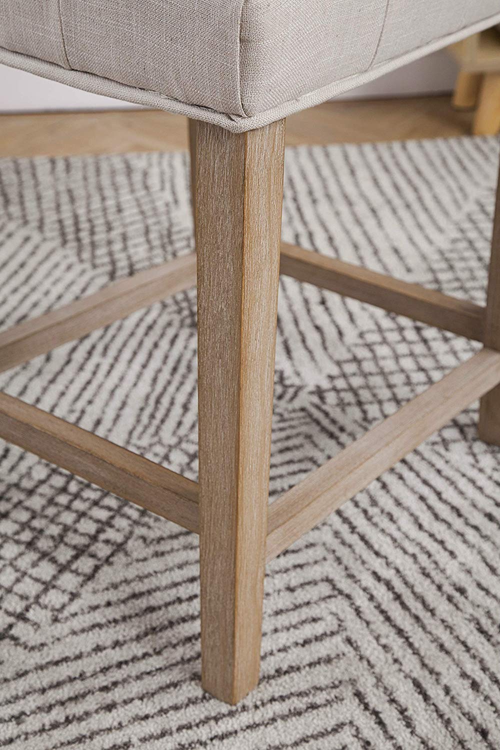 - Sturdy wooden frame with a crossbar footrest to prevent wobbling