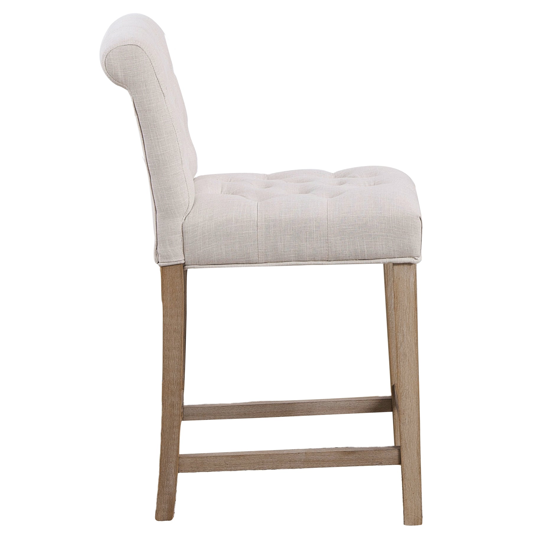 This bar stool is a perfect addition to kitchen islands, bars, or counters. It features a light, neutral – toned upholstered seat and backrest along with a solid wood frame. The combination of comfort and style makes it a great choice for various settings.