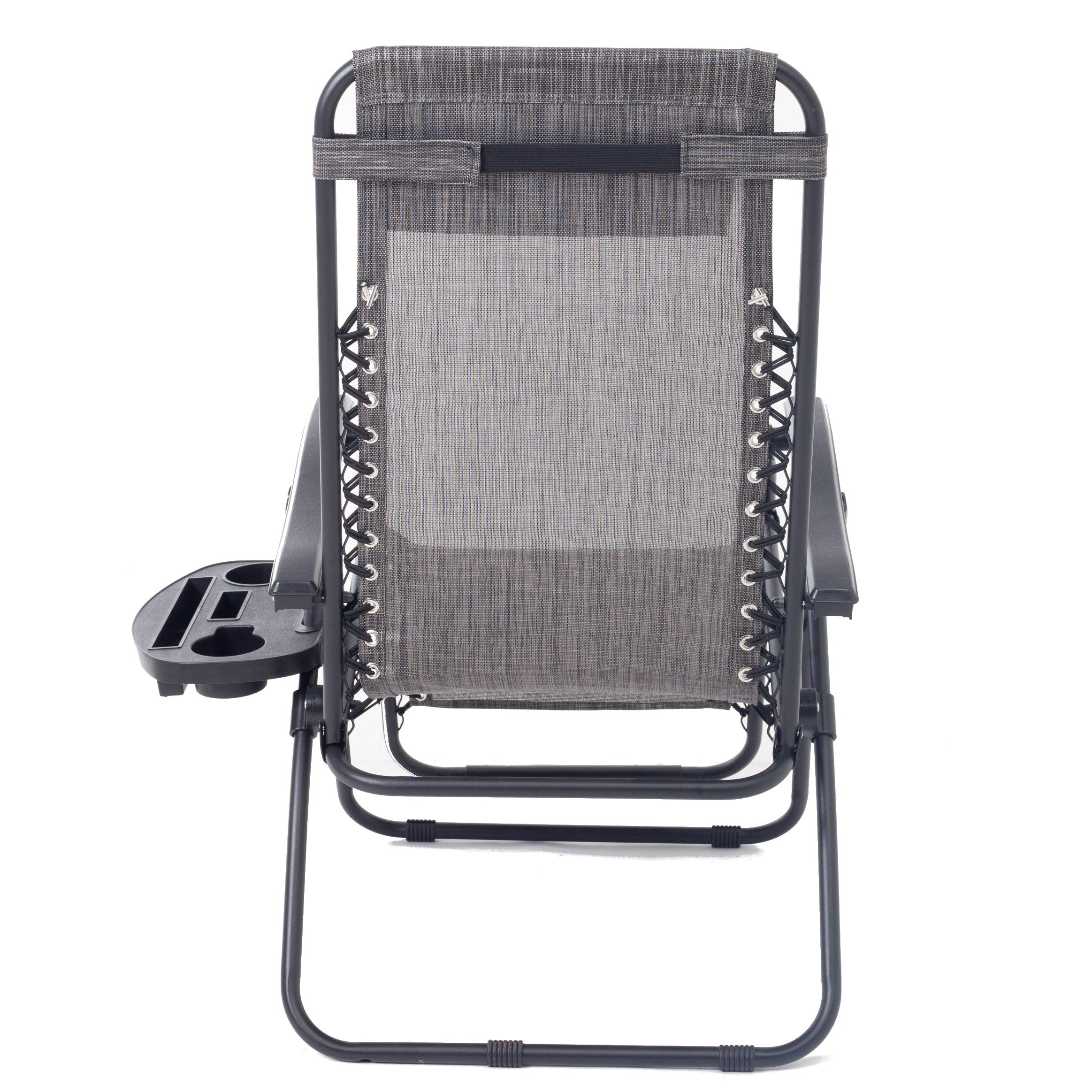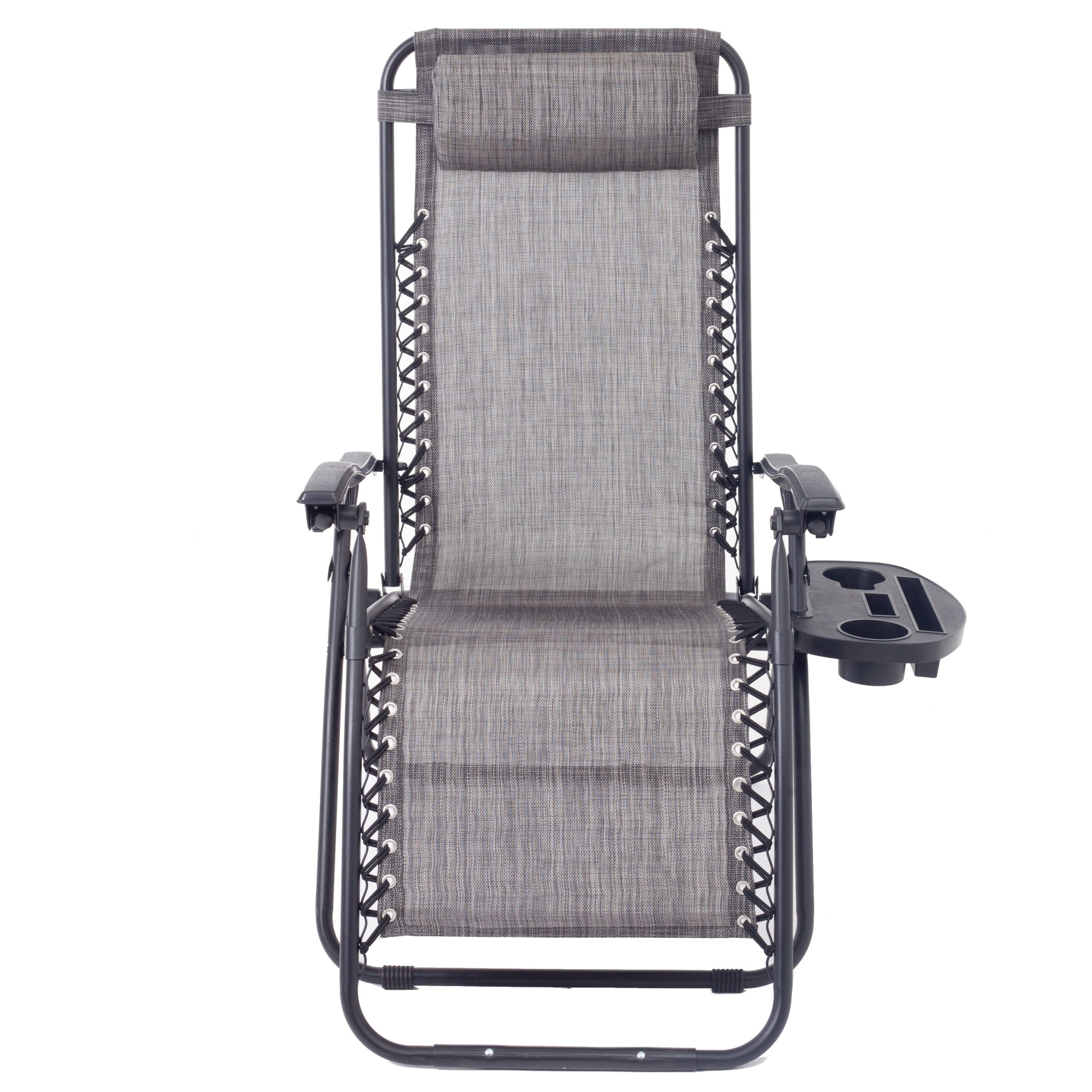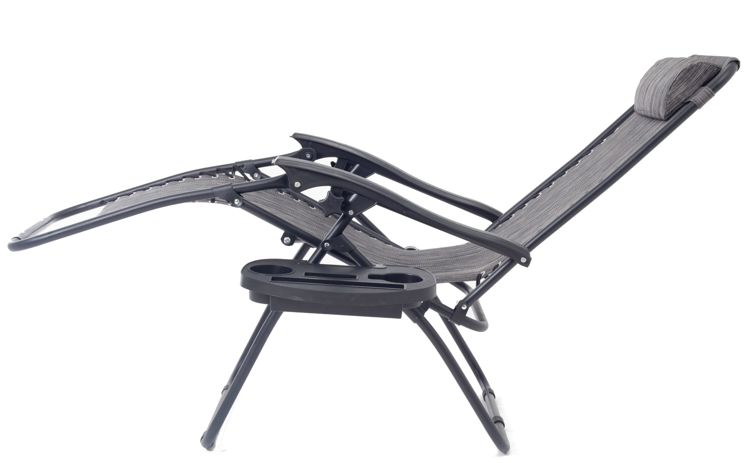 This folding reclining lounge chair is the perfect companion for outdoor relaxation. It offers a zero – gravity functionality to reduce spinal strain and comes with an extendable footrest and integrated cup holder and tray.