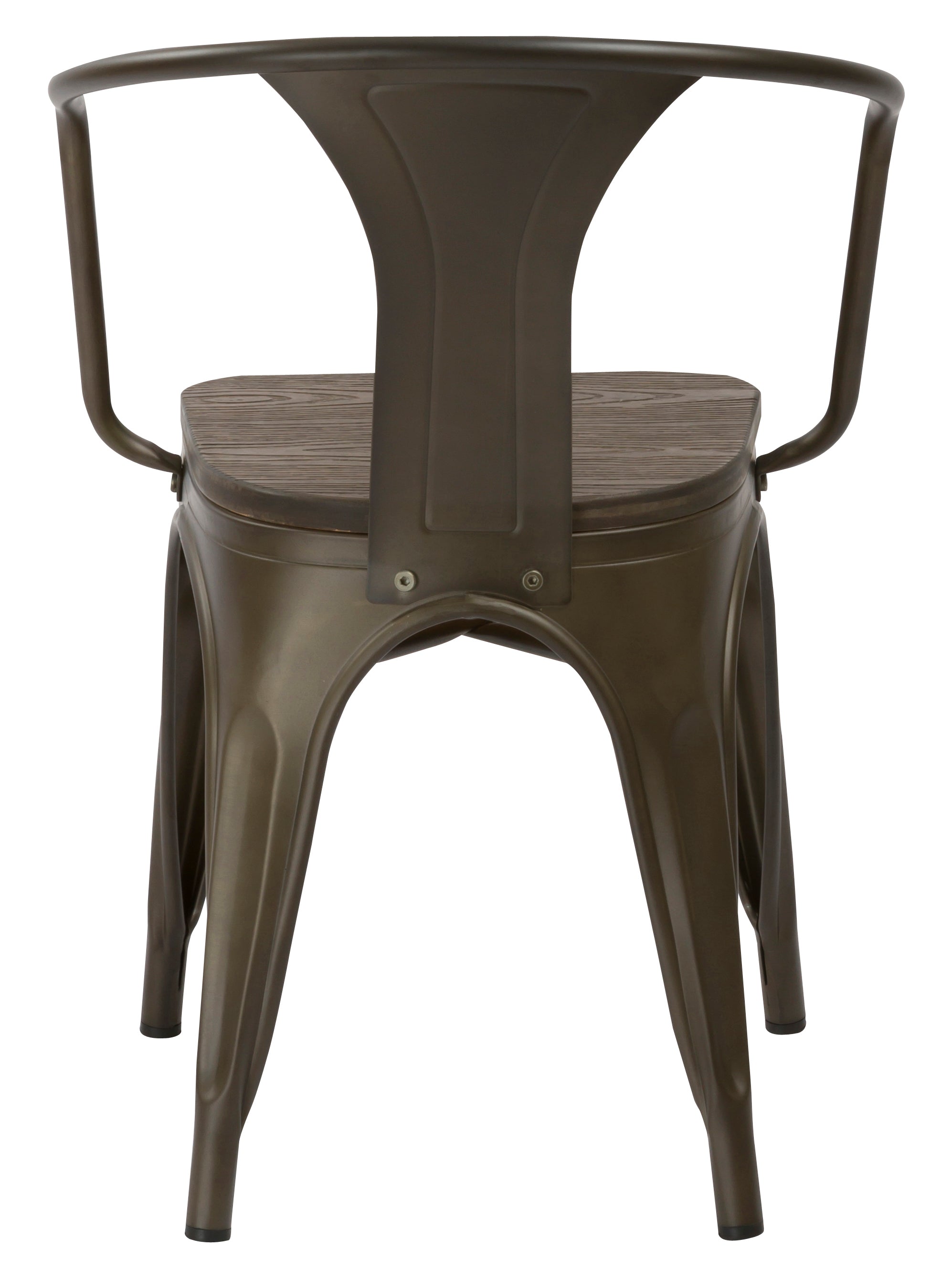 - Color: Metallic bronze/antique brass finish on the frame, dark brown wood – grain texture on the seat