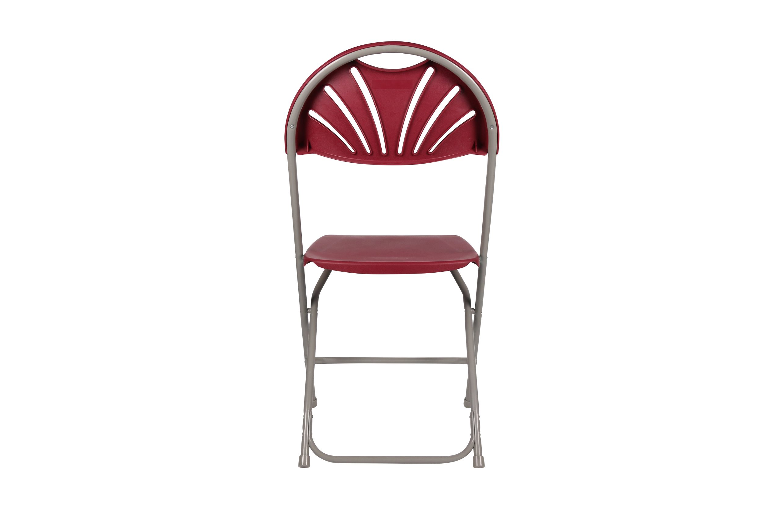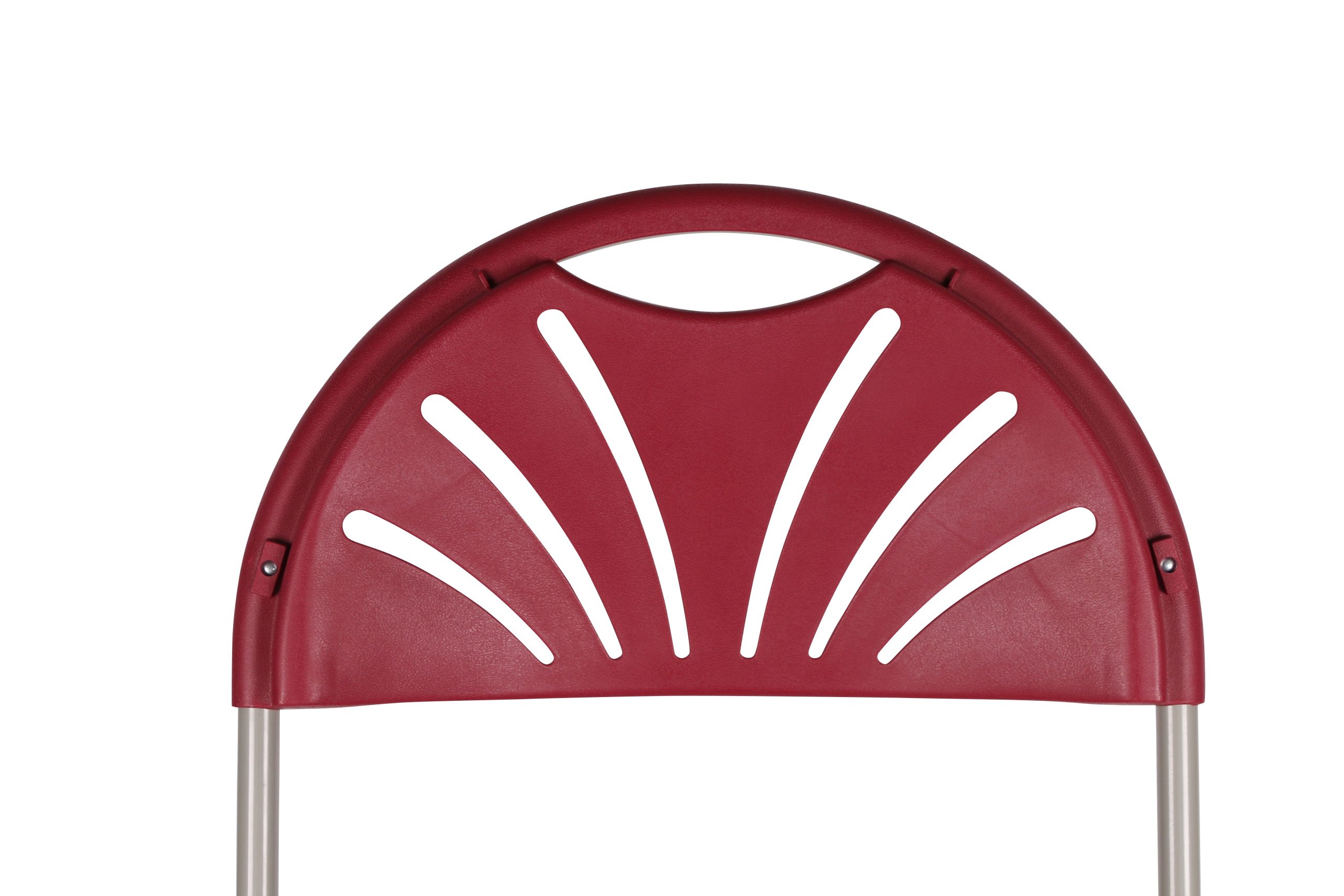Backrest Design Features a fan – like (sunburst) pattern of vertical slits/openings; small cutout at the top as a carry handle when folded